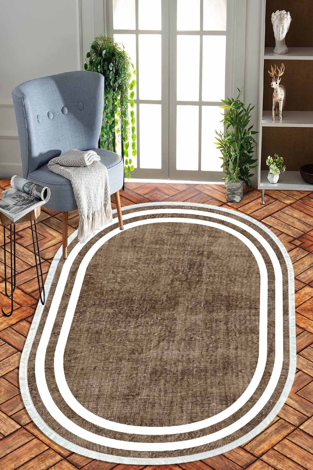 الأبعاد والتسليم: 1x سجادة زخرفية من بيركيليم بيضاوية الشكل قابلة للغسل وحريرية وغير قابلة للانزلاق | MLN-IP-O-HT-576