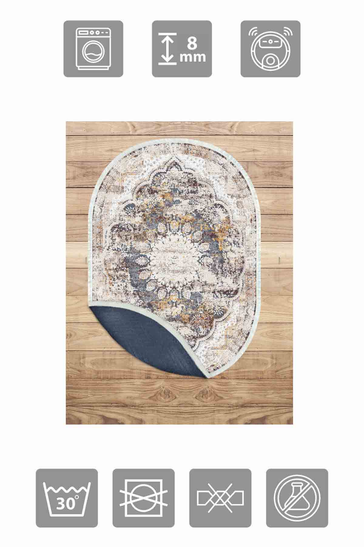 الأبعاد والتسليم: 1x سجادة زخرفية من بيركيليم بيضاوية الشكل قابلة للغسل وحريرية وغير قابلة للانزلاق | MLN-IP-O-HT-631
