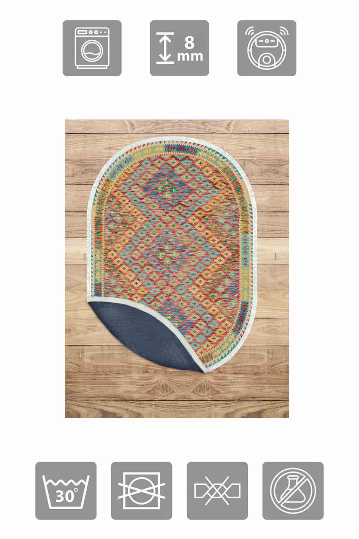 الأبعاد والتسليم: 1x سجادة زخرفية من بيركيليم بيضاوية الشكل قابلة للغسل وحريرية وغير قابلة للانزلاق | MLN-IP-O-HT-652
