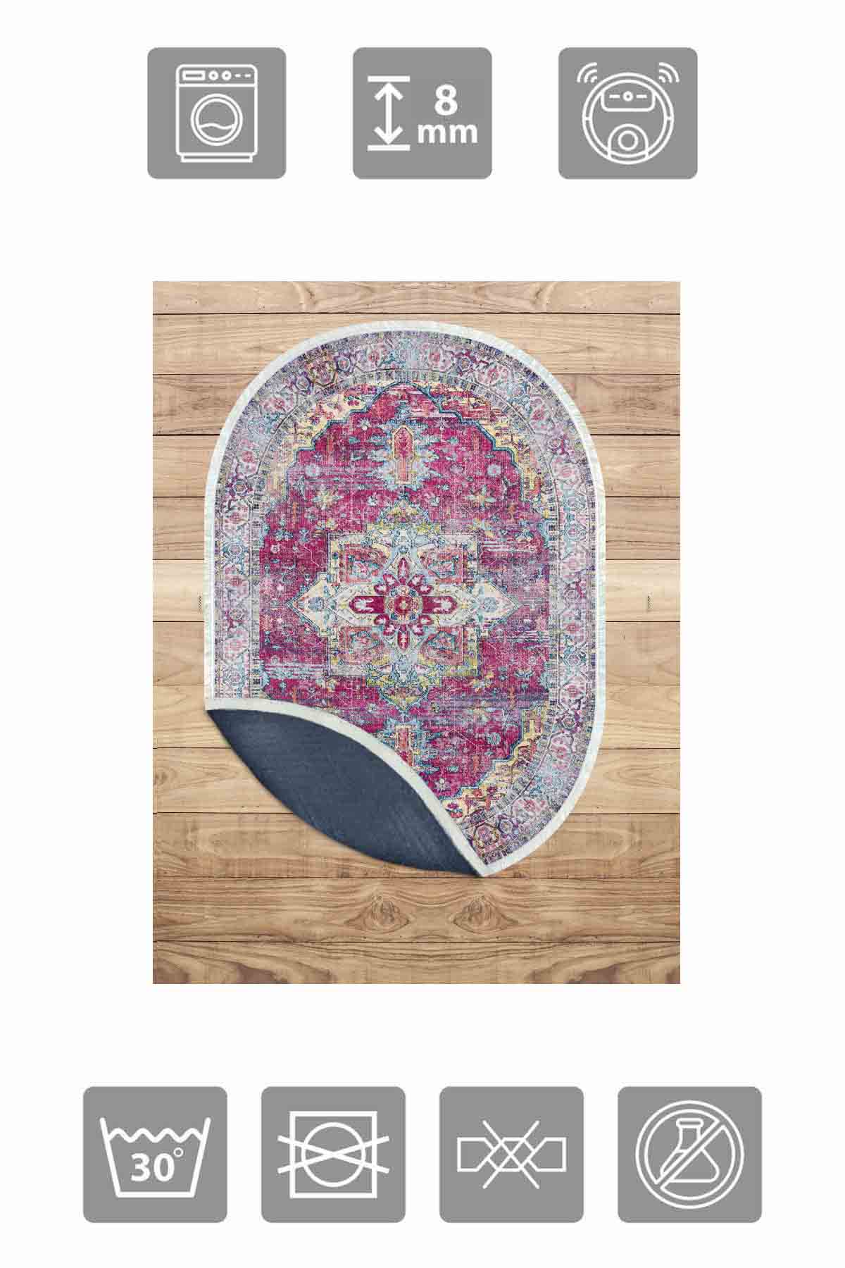 الأبعاد والتسليم: 1x سجادة زخرفية من بيركيليم بيضاوية الشكل قابلة للغسل وحريرية وغير قابلة للانزلاق | MLN-IP-O-HT-752