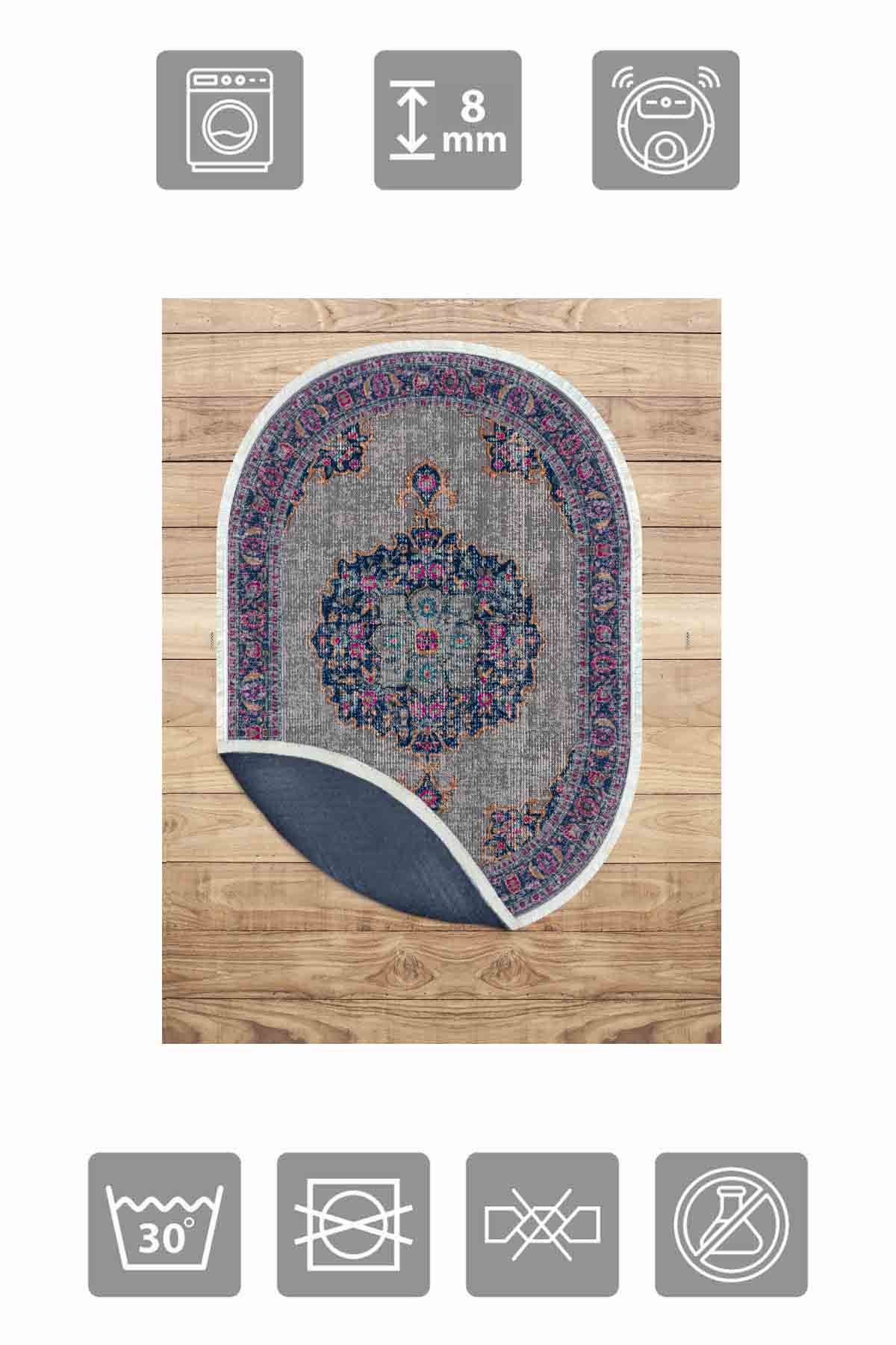 الأبعاد والتسليم: 1x سجادة زخرفية من بيركيليم بيضاوية الشكل قابلة للغسل وحريرية وغير قابلة للانزلاق | MLN-IP-O-HT-753