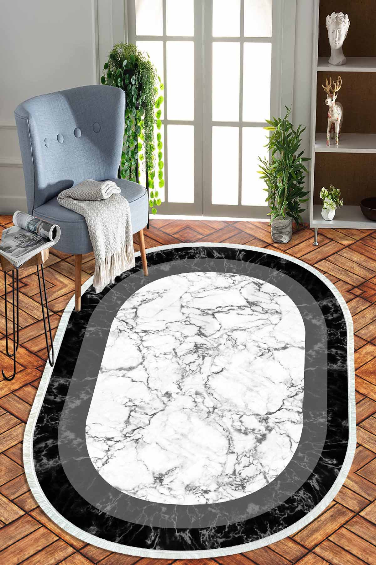 الأبعاد والتسليم: 1x سجادة زخرفية من بيركيليم بيضاوية الشكل قابلة للغسل وحريرية وغير قابلة للانزلاق | MLN-IP-O-HT-809