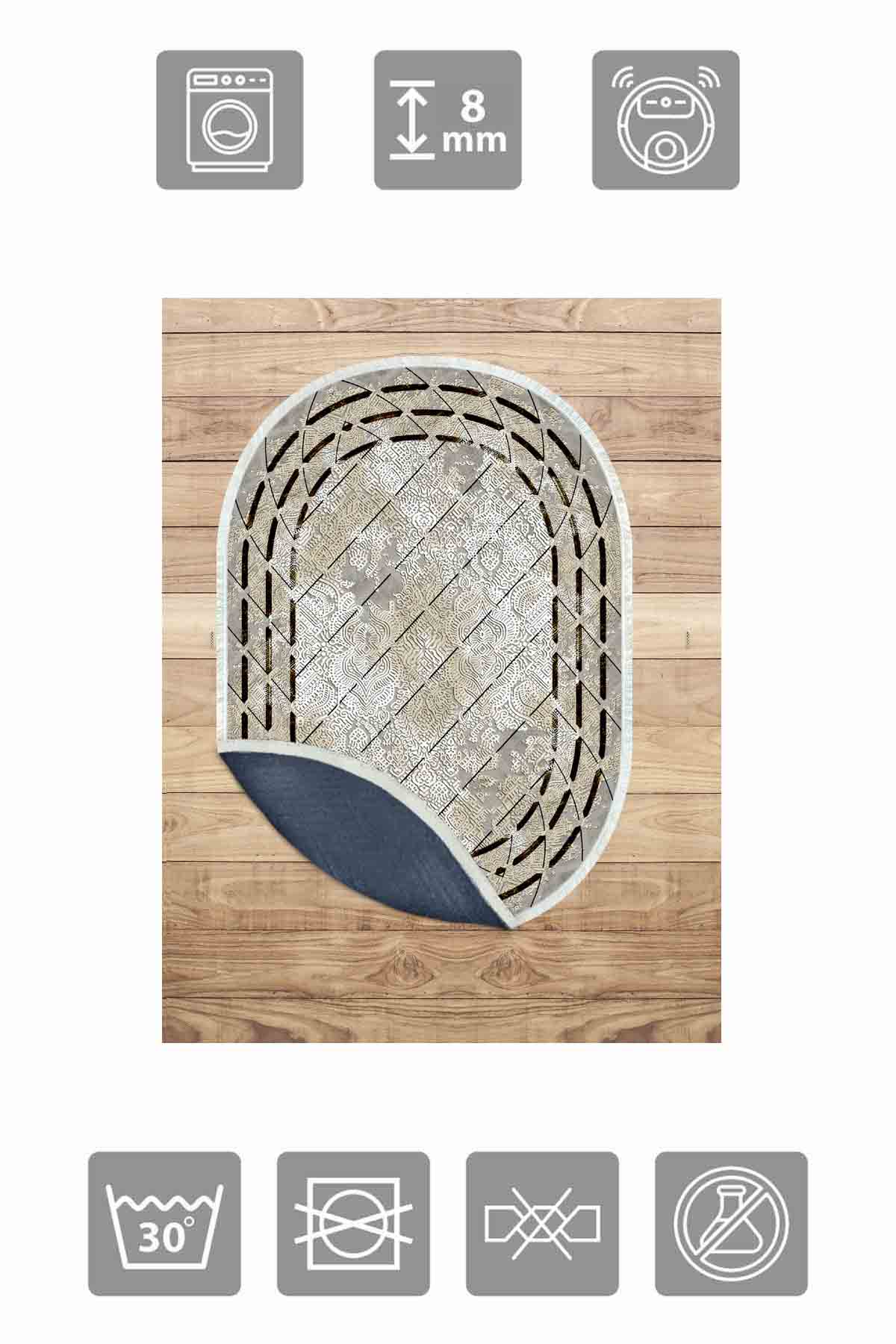 الأبعاد والتسليم: 1x سجادة زخرفية من بيركيليم بيضاوية الشكل قابلة للغسل وحريرية وغير قابلة للانزلاق | MLN-IP-O-HY-1313