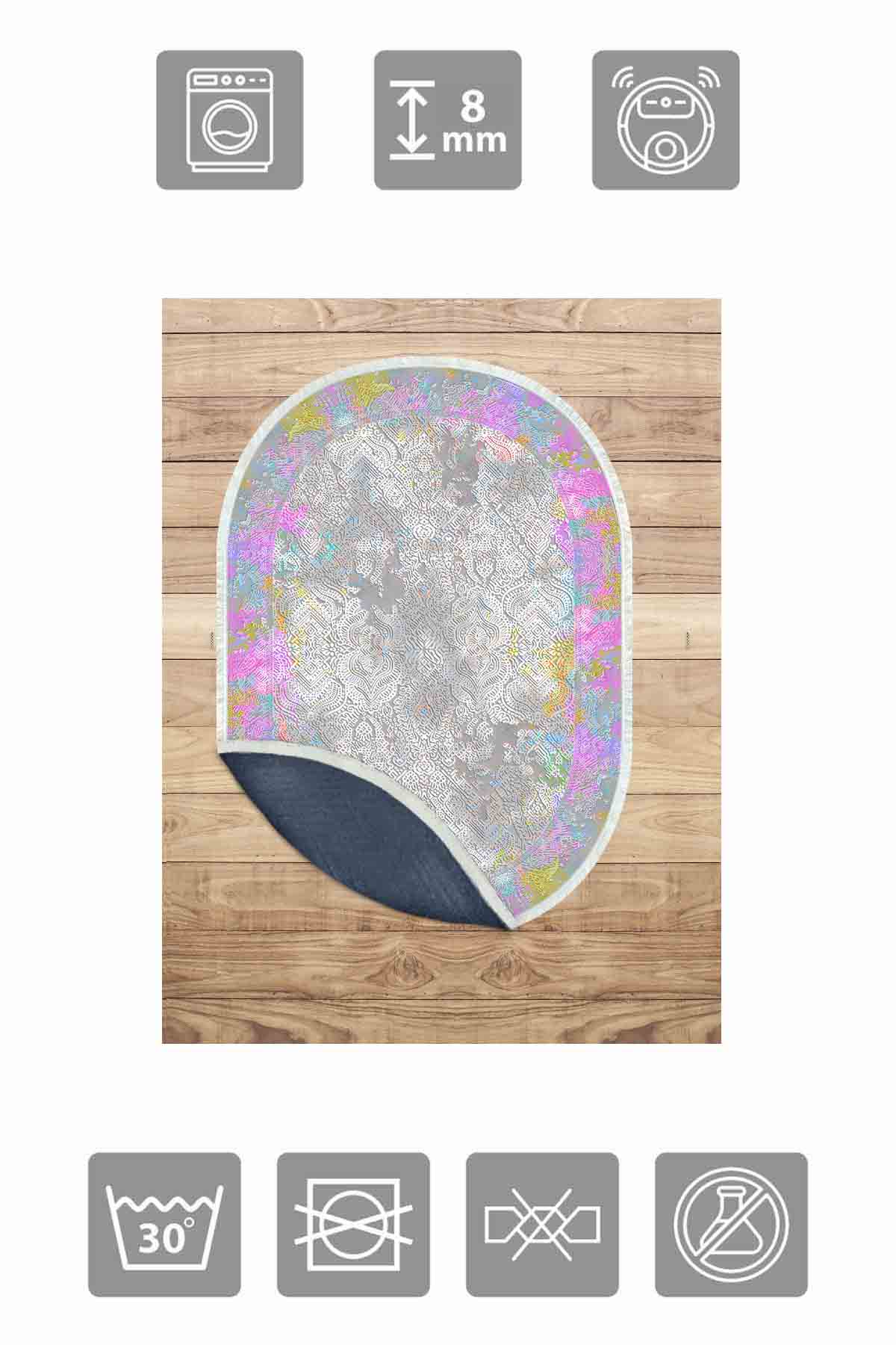 الأبعاد والتسليم: 1x سجادة زخرفية من بيركيليم بيضاوية الشكل قابلة للغسل وحريرية وغير قابلة للانزلاق | MLN-IP-O-SD-232