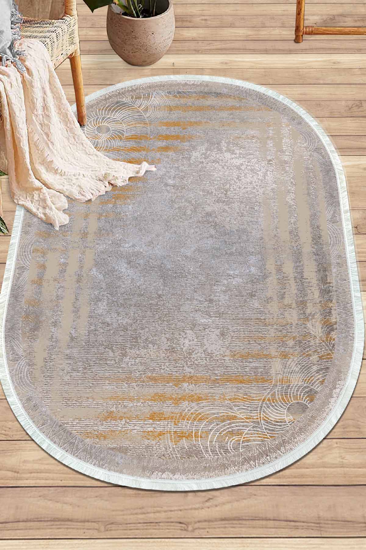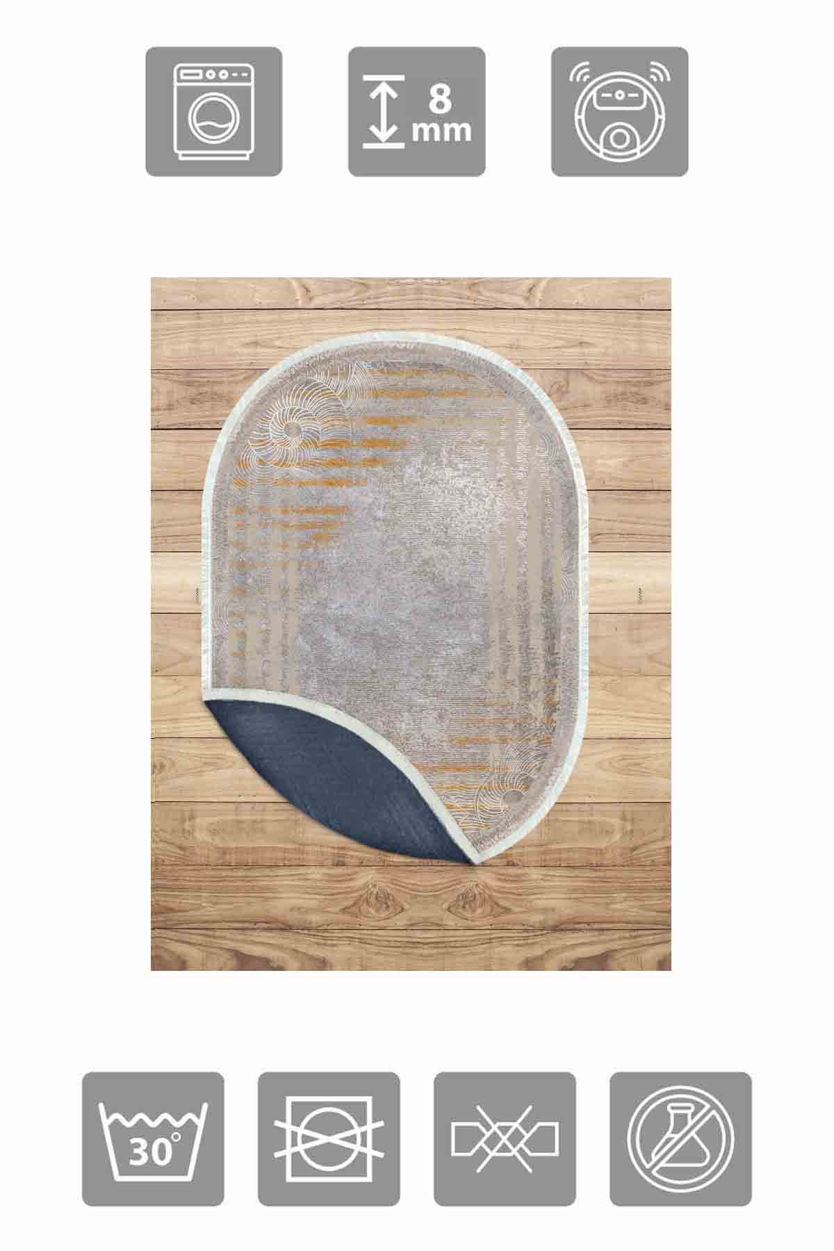 الأبعاد والتسليم: 1x سجادة زخرفية من بيركيليم بيضاوية الشكل قابلة للغسل وحريرية وغير قابلة للانزلاق | MLN-IP-O-SD-234