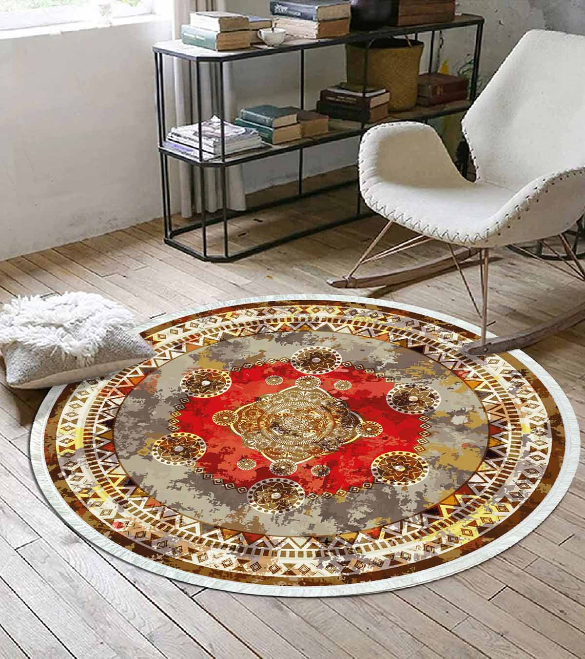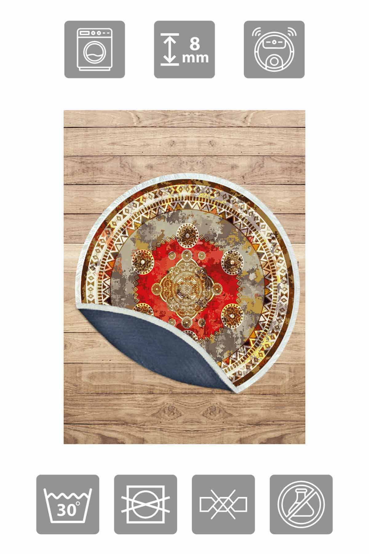 الأبعاد والتسليم: 1x بيركيليم سجادة دائرية قابلة للغسل مزخرفة بقاعدة حريرية غير قابلة للانزلاق | MLN-IP-YU-HK-005