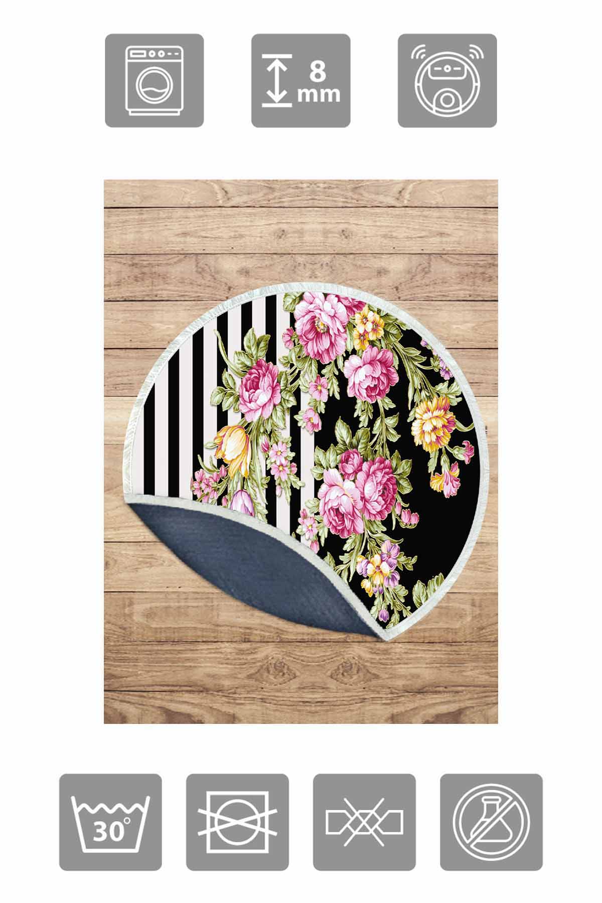 الأبعاد والتسليم: 1x بيركيليم سجادة دائرية قابلة للغسل مزخرفة بقاعدة حريرية غير قابلة للانزلاق | MLN-IP-YU-HS-387