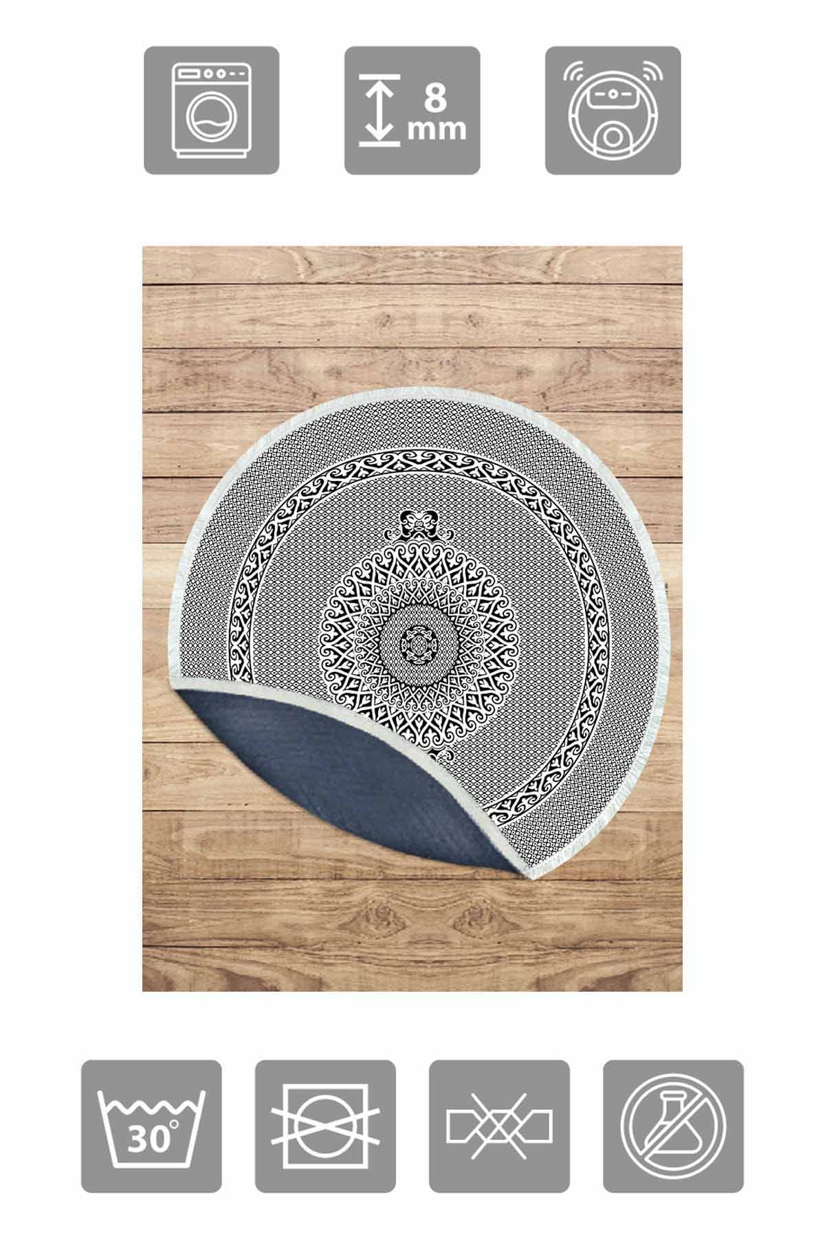 الأبعاد والتسليم: 1x بيركيليم سجادة دائرية قابلة للغسل مزخرفة بقاعدة حريرية غير قابلة للانزلاق | MLN-IP-YU-HS-563