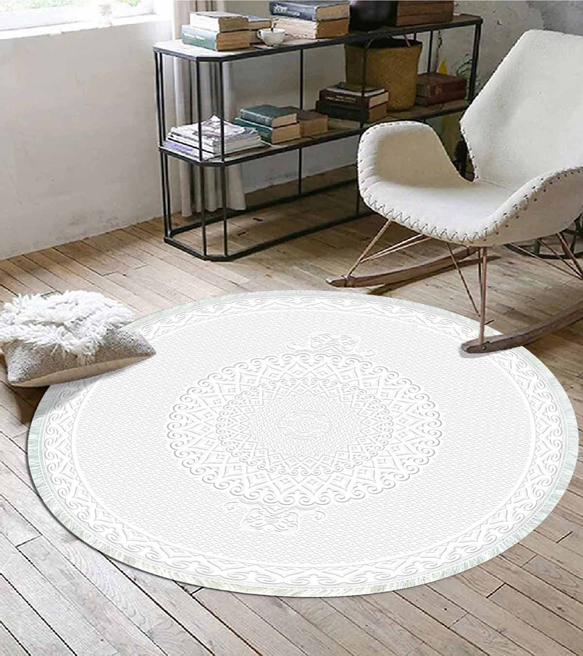 بيركيليم سجادة دائرية قابلة للغسل مزخرفة بقاعدة حريرية غير قابلة للانزلاق | MLN-IP-YU-HS-564