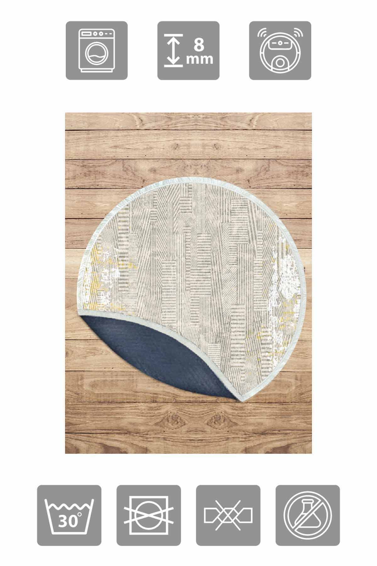 الأبعاد والتسليم: 1x بيركيليم سجادة دائرية قابلة للغسل مزخرفة بقاعدة حريرية غير قابلة للانزلاق | MLN-IP-YU-HT-112