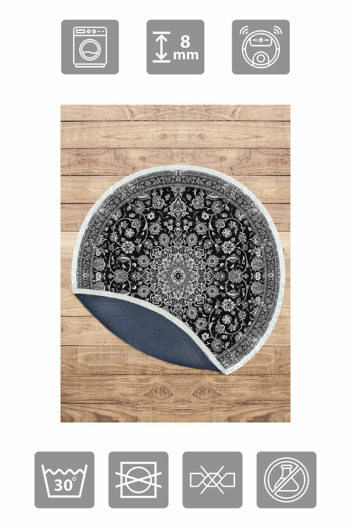 الأبعاد والتسليم: 1x بيركيليم سجادة دائرية قابلة للغسل مزخرفة بقاعدة حريرية غير قابلة للانزلاق | MLN-IP-YU-HT-125