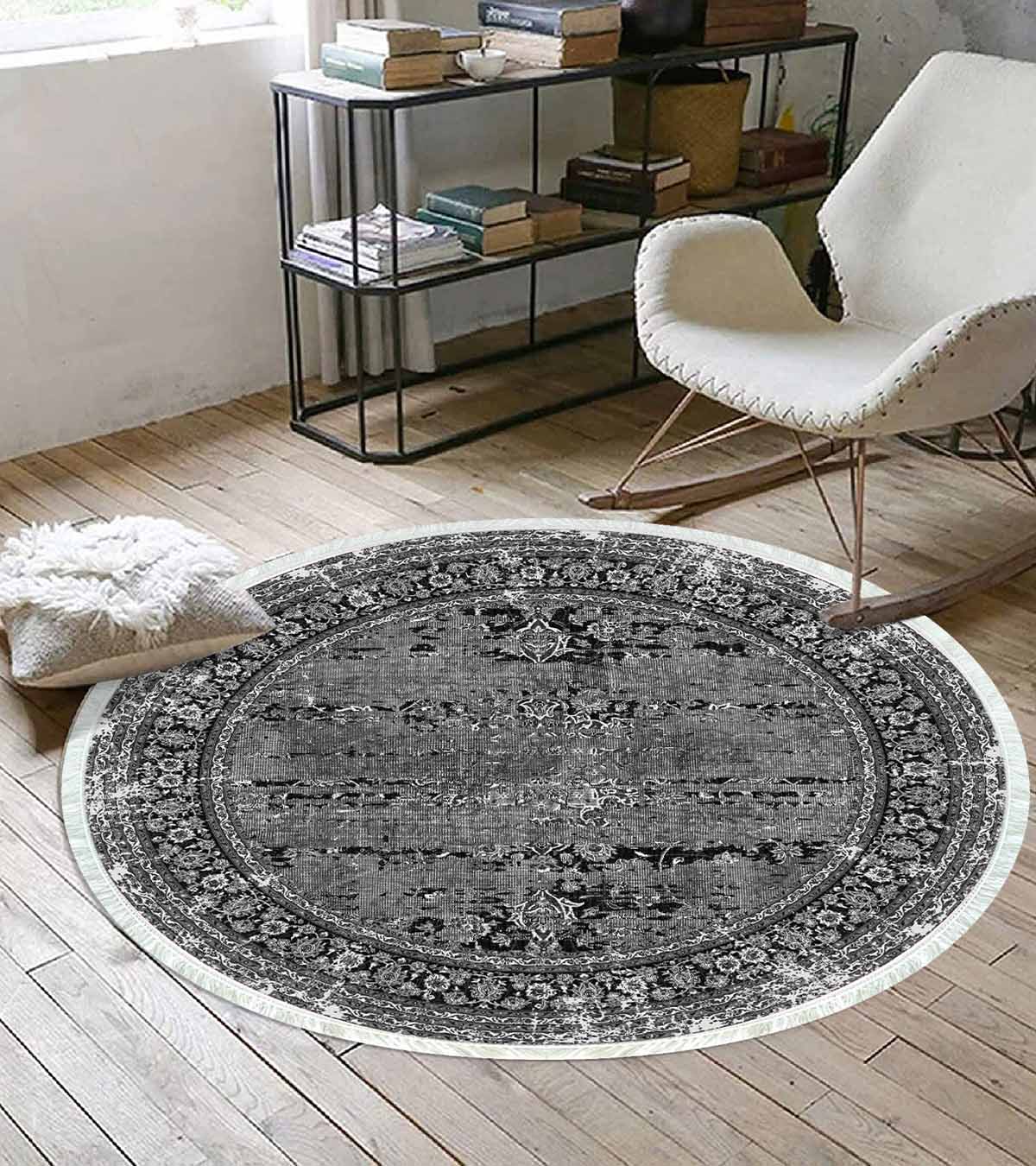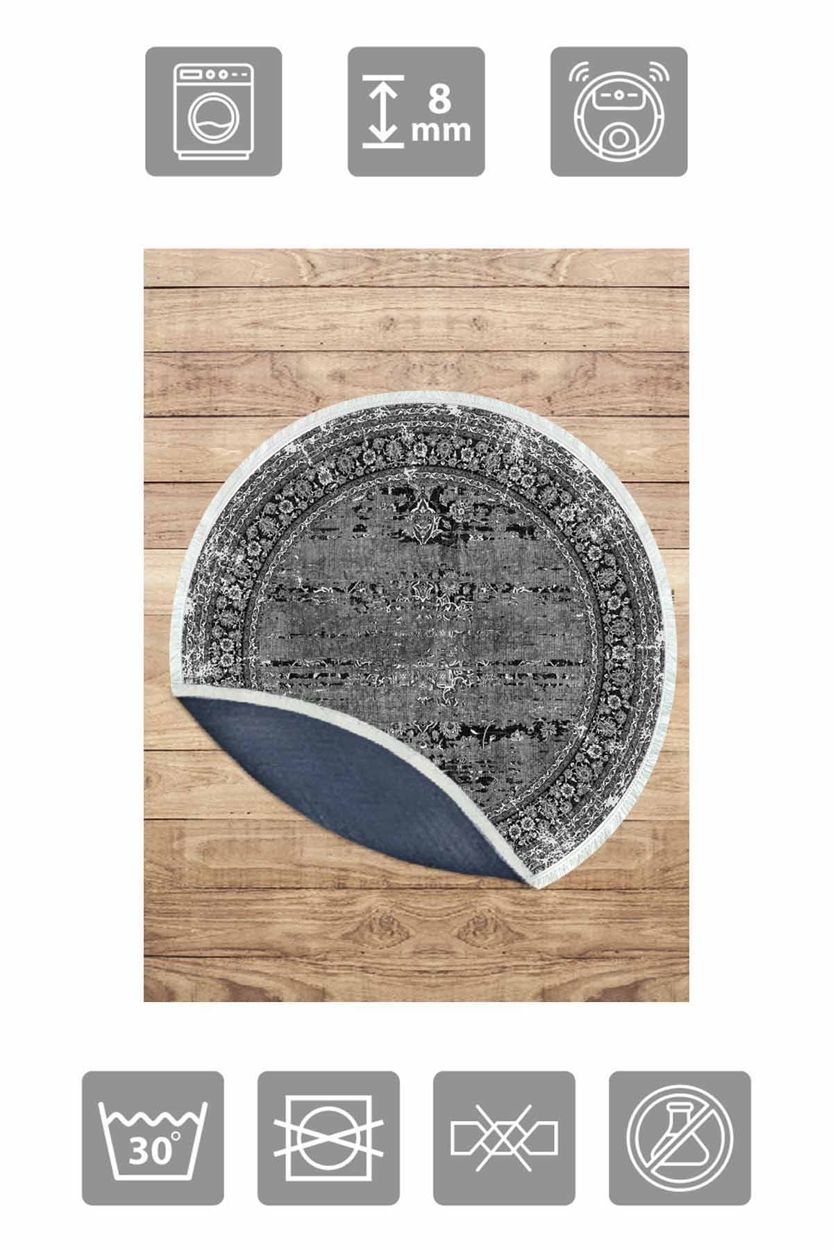 بيركيليم سجادة دائرية قابلة للغسل مزخرفة بقاعدة حريرية غير قابلة للانزلاق | MLN-IP-YU-HT-126