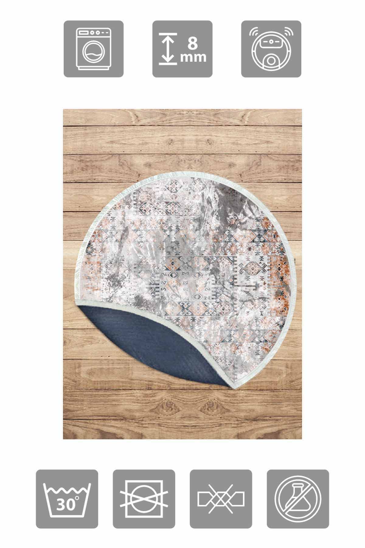 الأبعاد والتسليم: 1x بيركيليم سجادة دائرية قابلة للغسل مزخرفة بقاعدة حريرية غير قابلة للانزلاق | MLN-IP-YU-HT-133