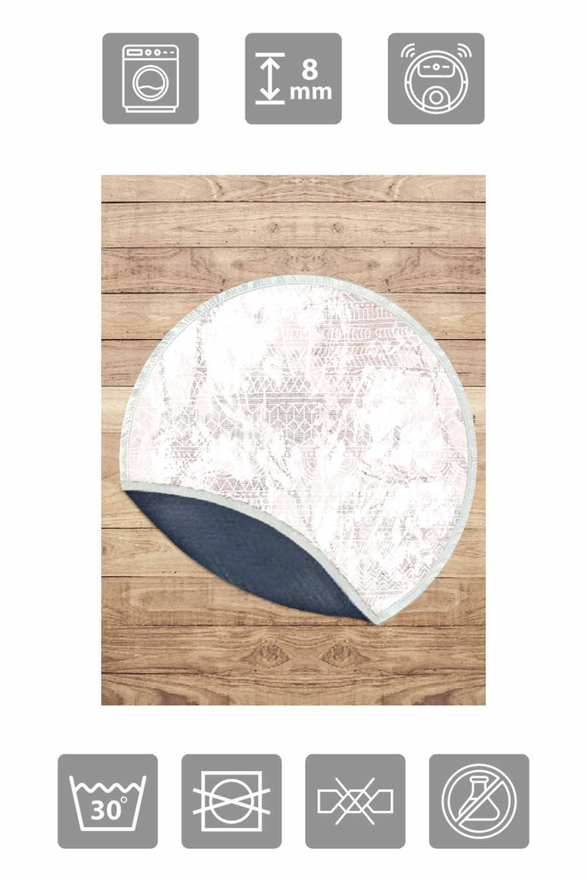 الأبعاد والتسليم: 1x بيركيليم سجادة دائرية قابلة للغسل مزخرفة بقاعدة حريرية غير قابلة للانزلاق | MLN-IP-YU-HT-214