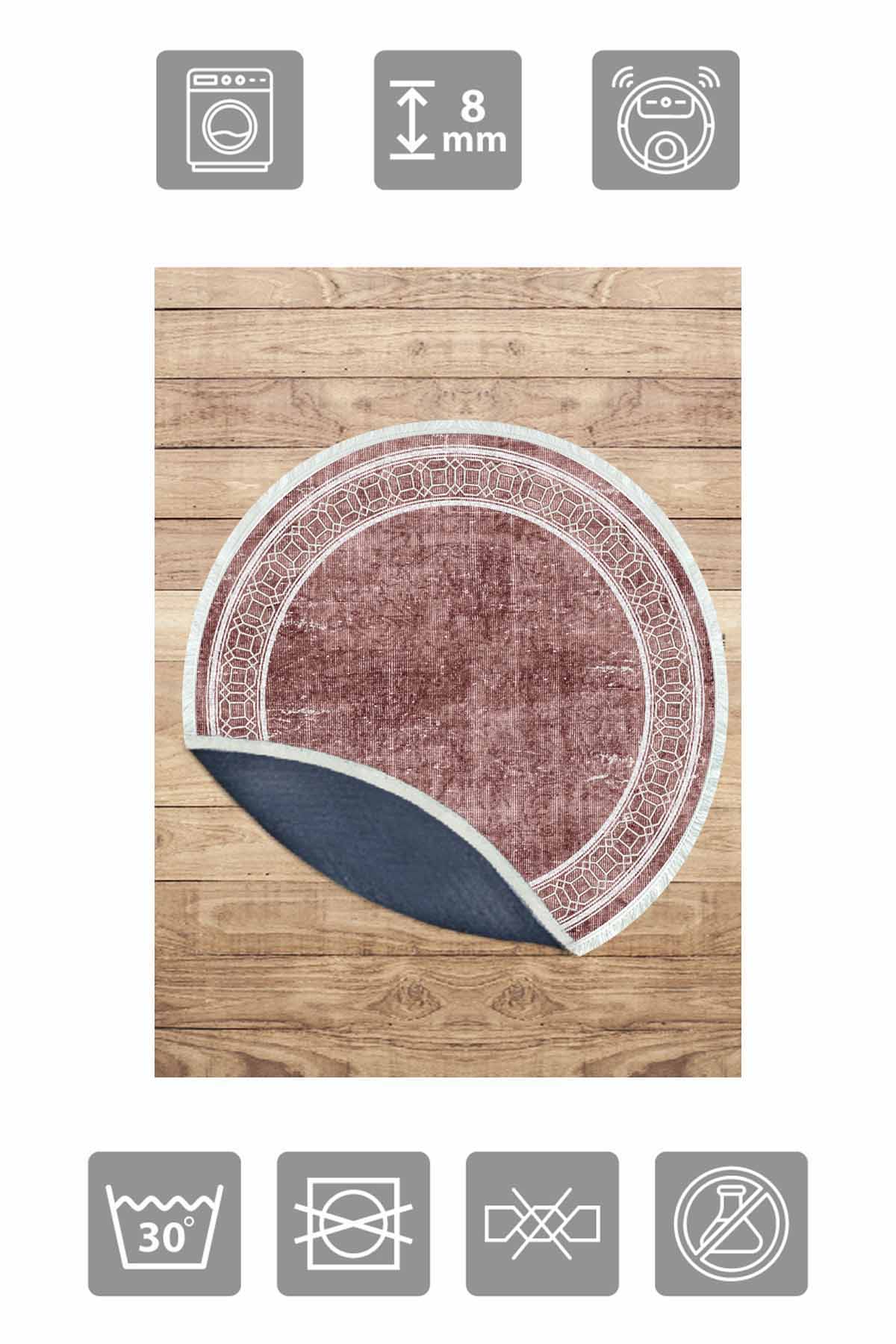 الأبعاد والتسليم: 1x بيركيليم سجادة دائرية قابلة للغسل مزخرفة بقاعدة حريرية غير قابلة للانزلاق | MLN-IP-YU-HT-240