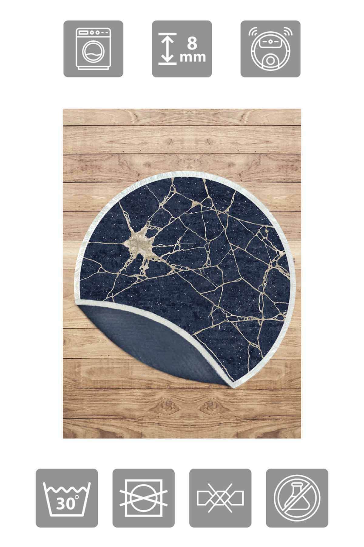 الأبعاد والتسليم: 1x بيركيليم سجادة دائرية قابلة للغسل مزخرفة بقاعدة حريرية غير قابلة للانزلاق | MLN-IP-YU-HT-259