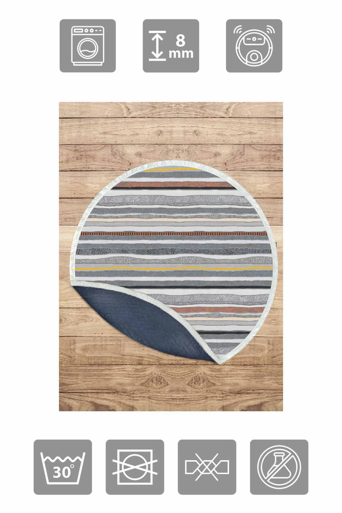 الأبعاد والتسليم: 1x بيركيليم سجادة دائرية قابلة للغسل مزخرفة بقاعدة حريرية غير قابلة للانزلاق | MLN-IP-YU-HT-263