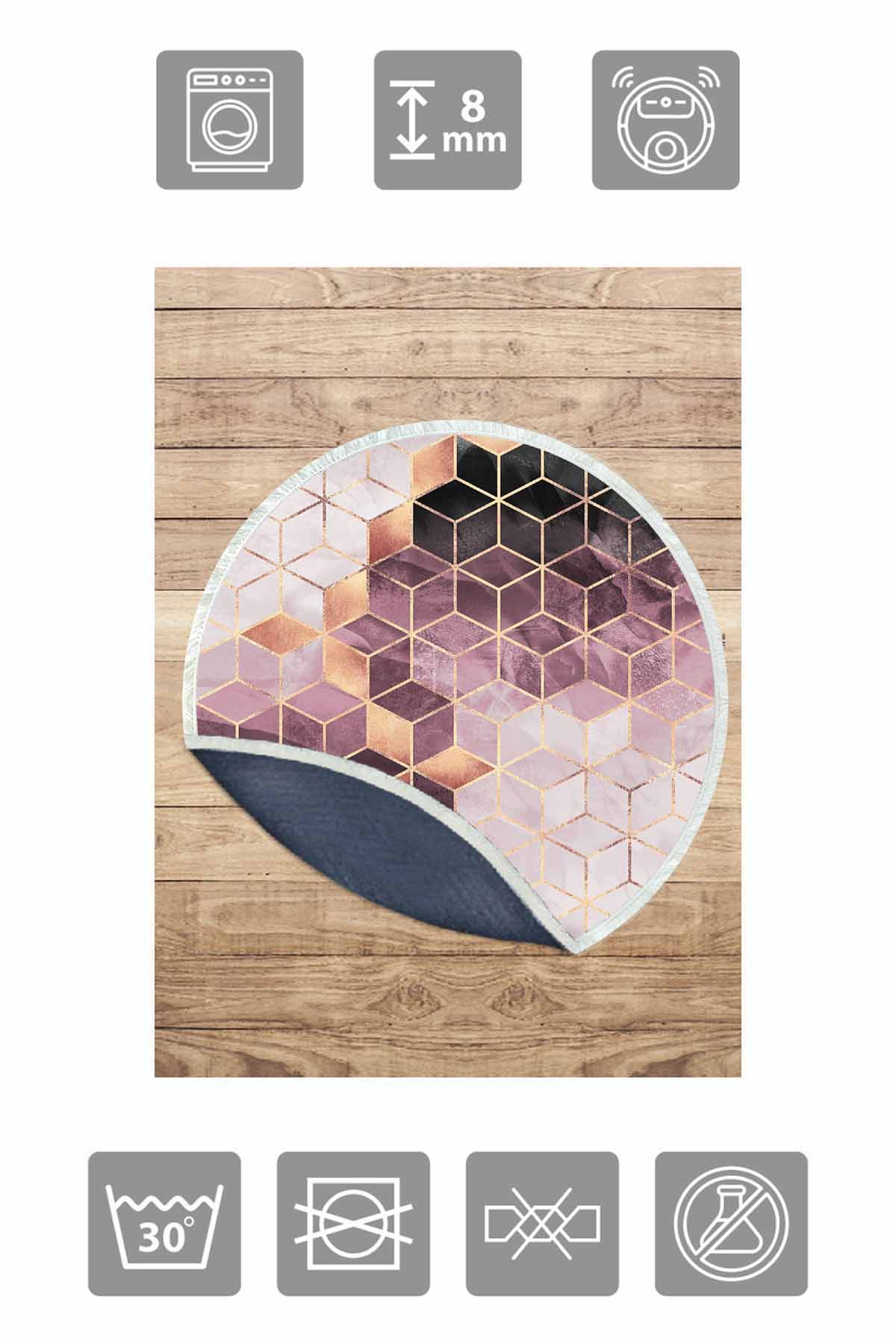 الأبعاد والتسليم: 1x بيركيليم سجادة دائرية قابلة للغسل مزخرفة بقاعدة حريرية غير قابلة للانزلاق | MLN-IP-YU-HT-323