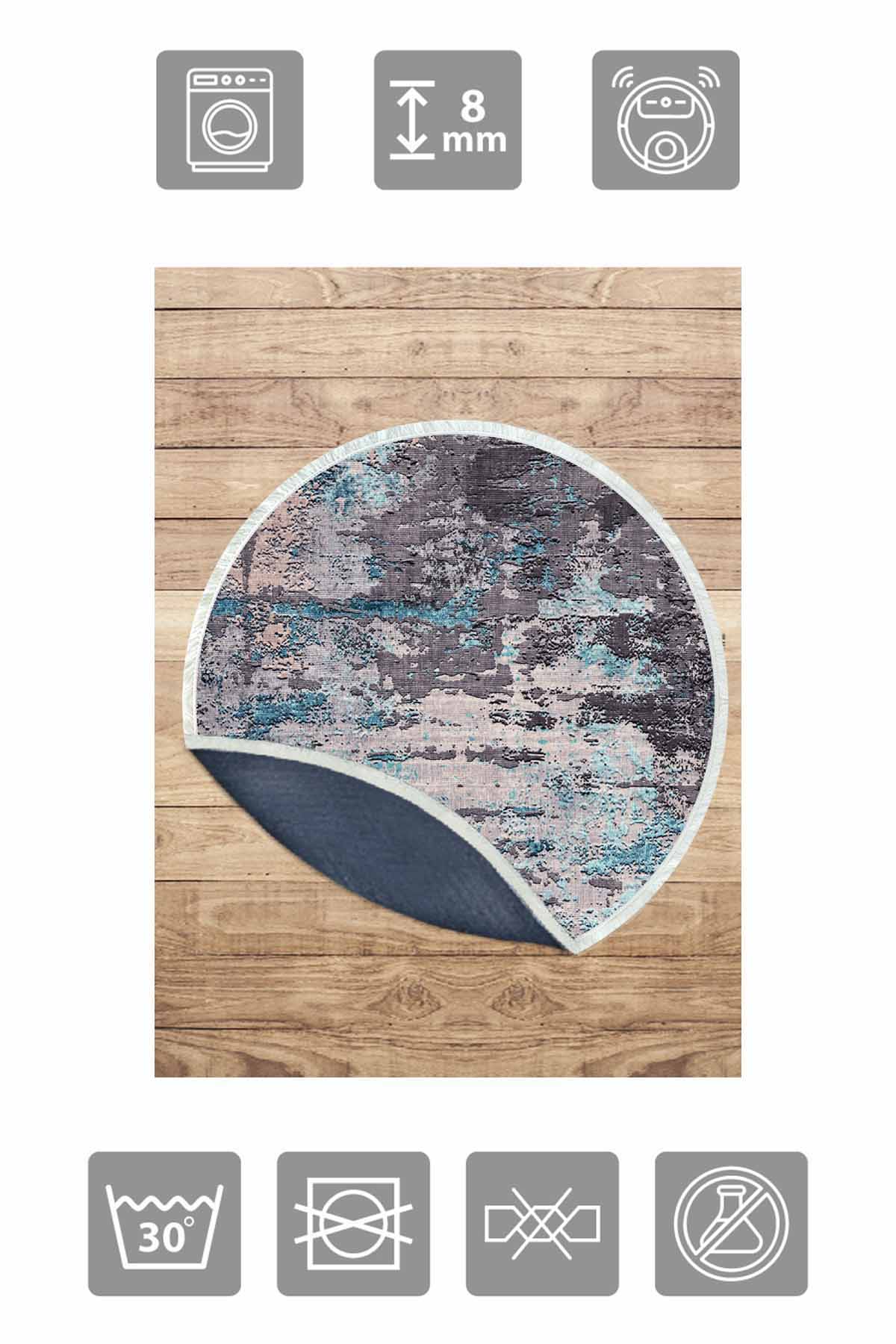بيركيليم سجادة دائرية قابلة للغسل مزخرفة بقاعدة حريرية غير قابلة للانزلاق | MLN-IP-YU-HT-334