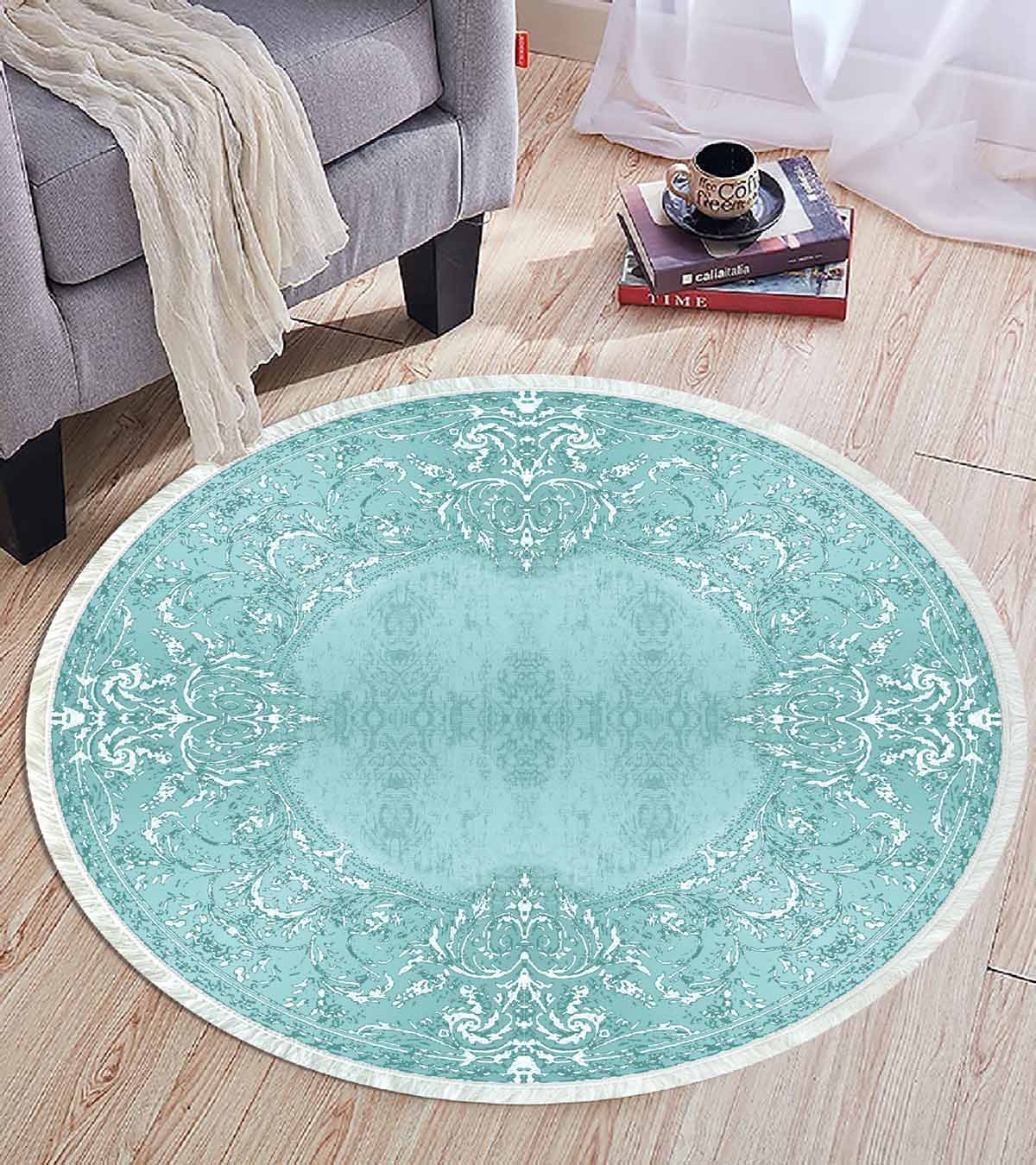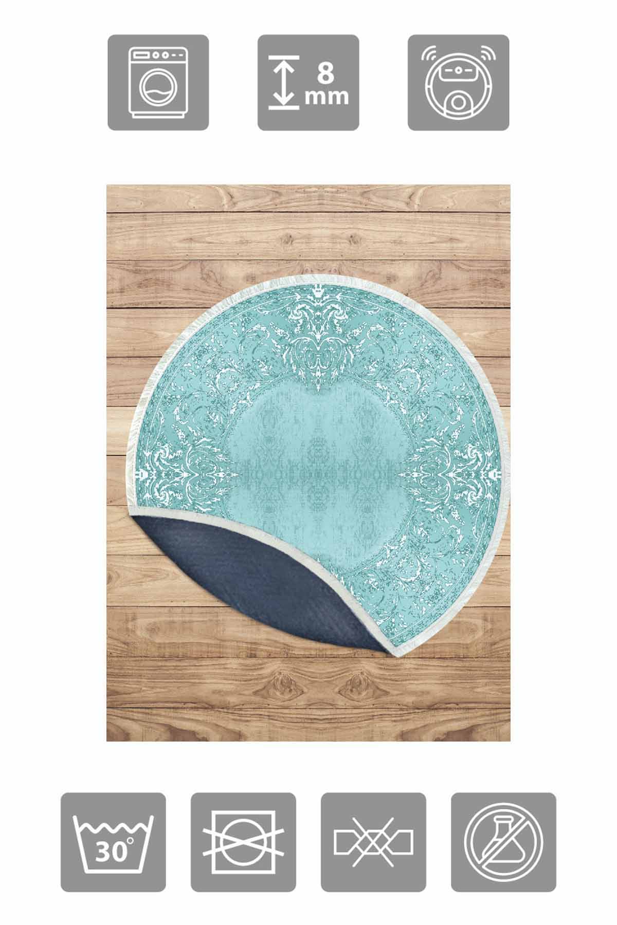 بيركيليم سجادة دائرية قابلة للغسل مزخرفة بقاعدة حريرية غير قابلة للانزلاق | MLN-IP-YU-HT-351