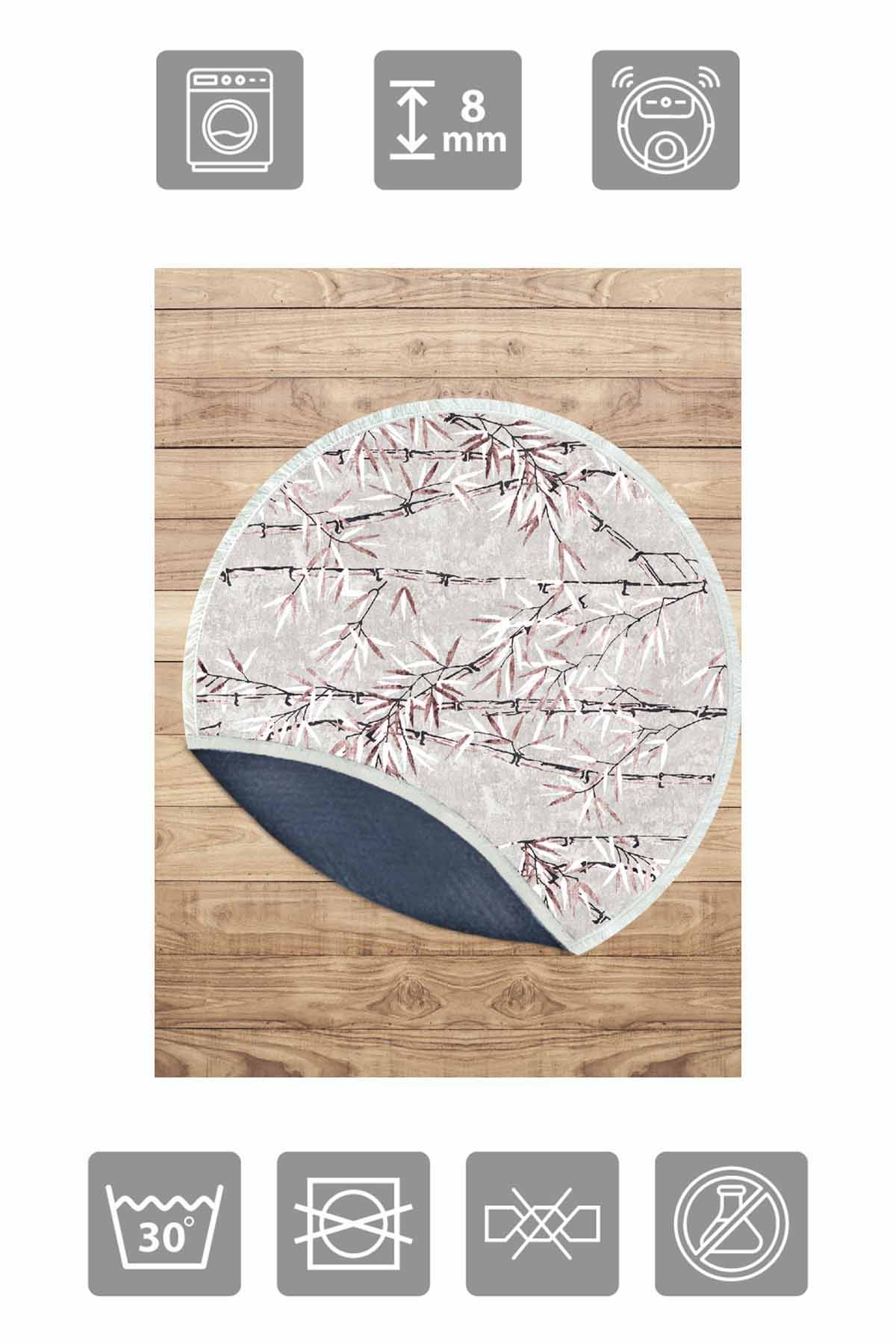 بيركيليم سجادة دائرية قابلة للغسل مزخرفة بقاعدة حريرية غير قابلة للانزلاق | MLN-IP-YU-HT-353