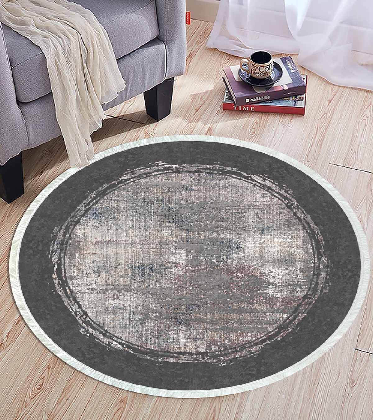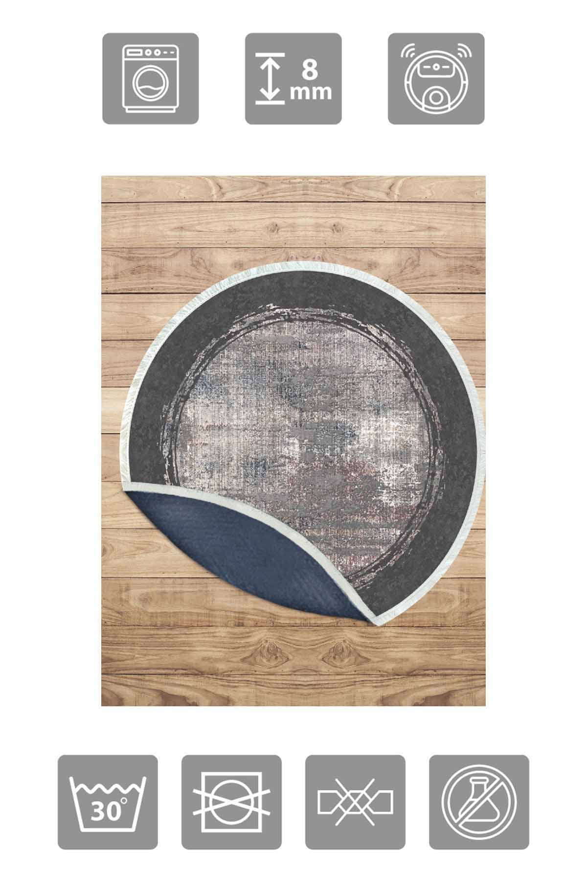 الأبعاد والتسليم: 1x بيركيليم سجادة دائرية قابلة للغسل مزخرفة بقاعدة حريرية غير قابلة للانزلاق | MLN-IP-YU-HT-356