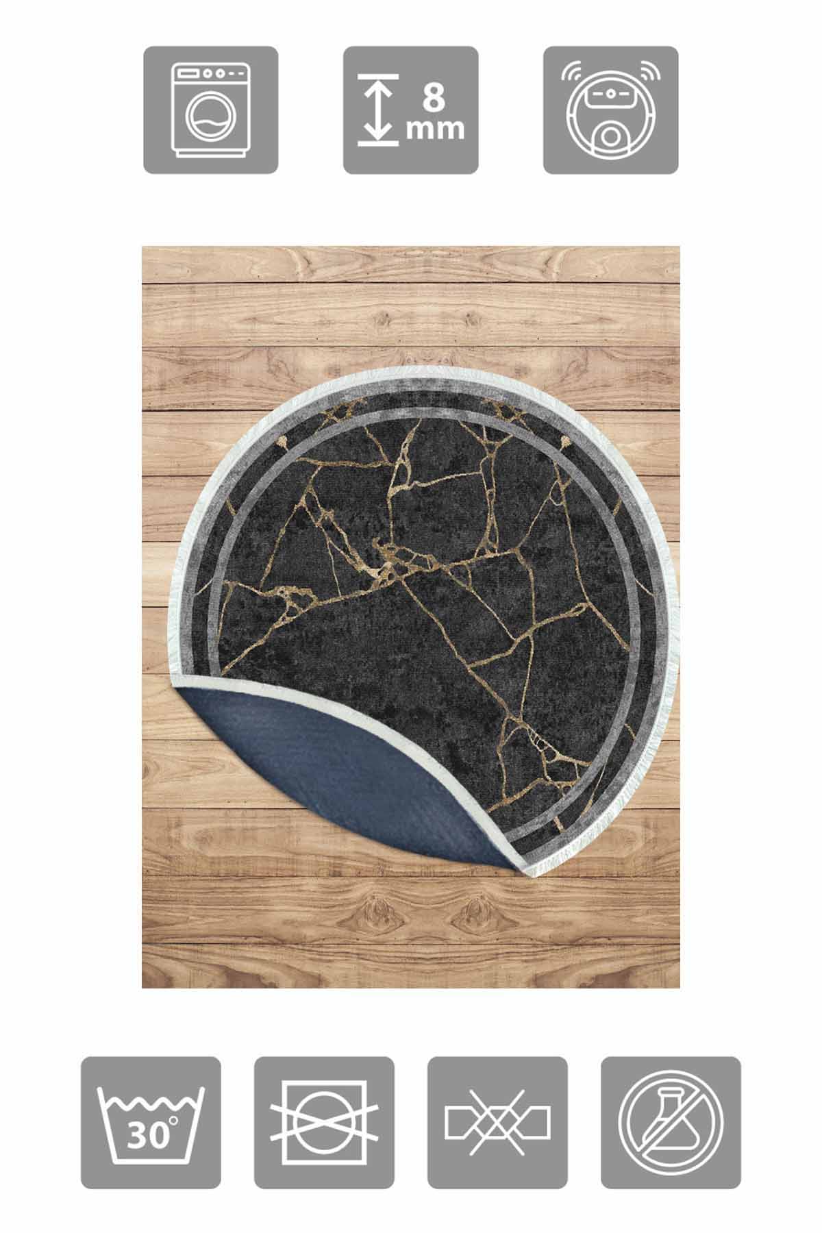الأبعاد والتسليم: 1x بيركيليم سجادة دائرية قابلة للغسل مزخرفة بقاعدة حريرية غير قابلة للانزلاق | MLN-IP-YU-HT-366