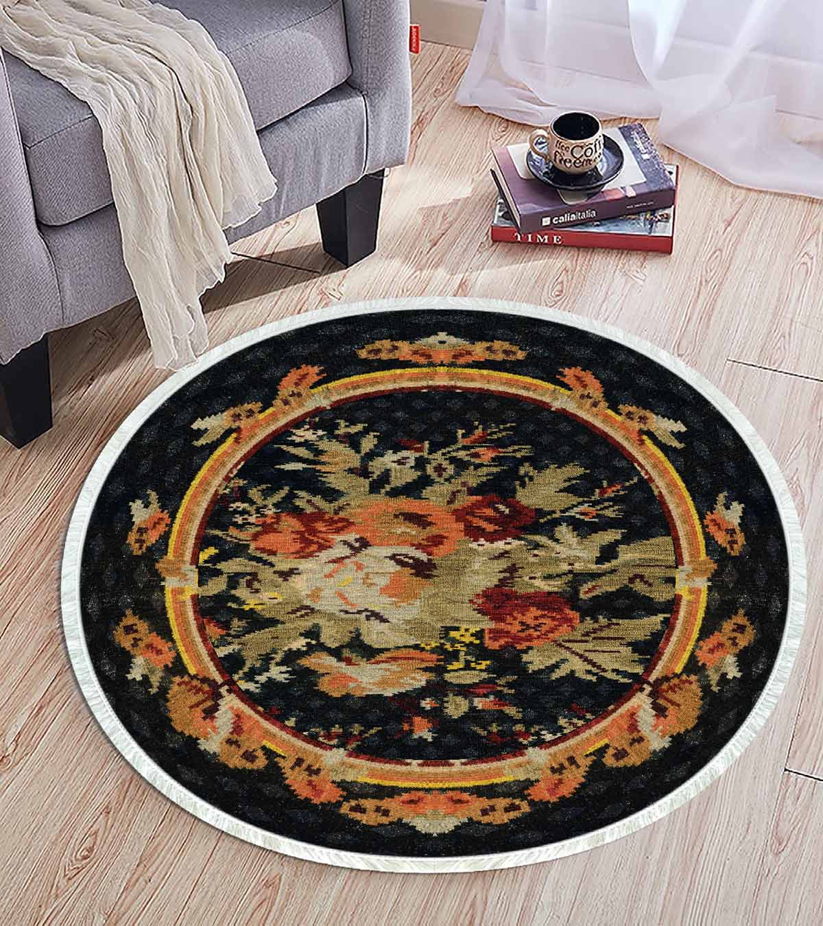 الأبعاد والتسليم: 1x بيركيليم سجادة دائرية قابلة للغسل مزخرفة بقاعدة حريرية غير قابلة للانزلاق | MLN-IP-YU-HT-452
