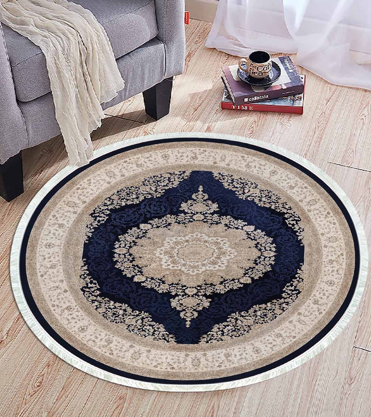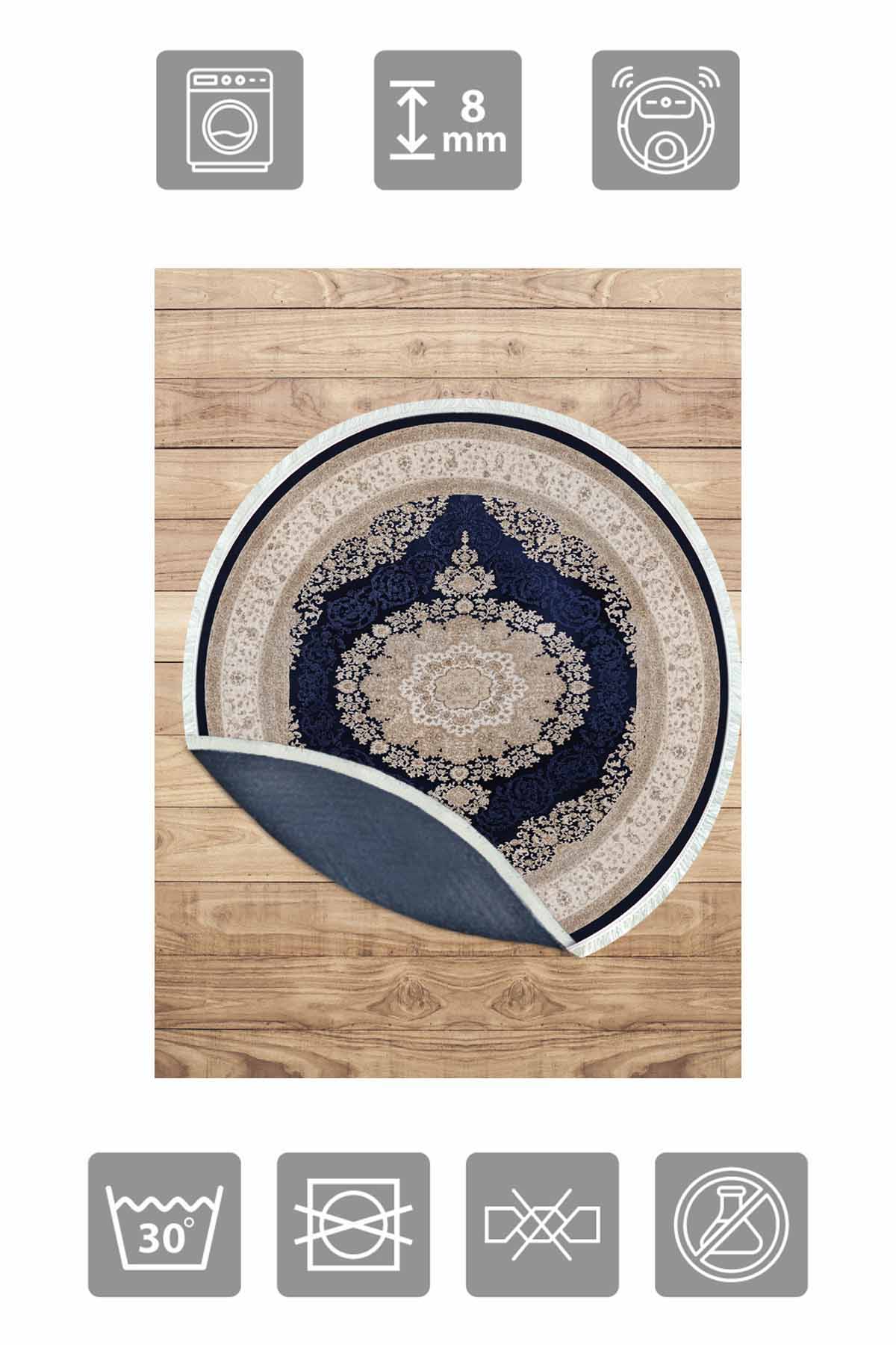 الأبعاد والتسليم: 1x بيركيليم سجادة دائرية قابلة للغسل مزخرفة بقاعدة حريرية غير قابلة للانزلاق | MLN-IP-YU-HT-461