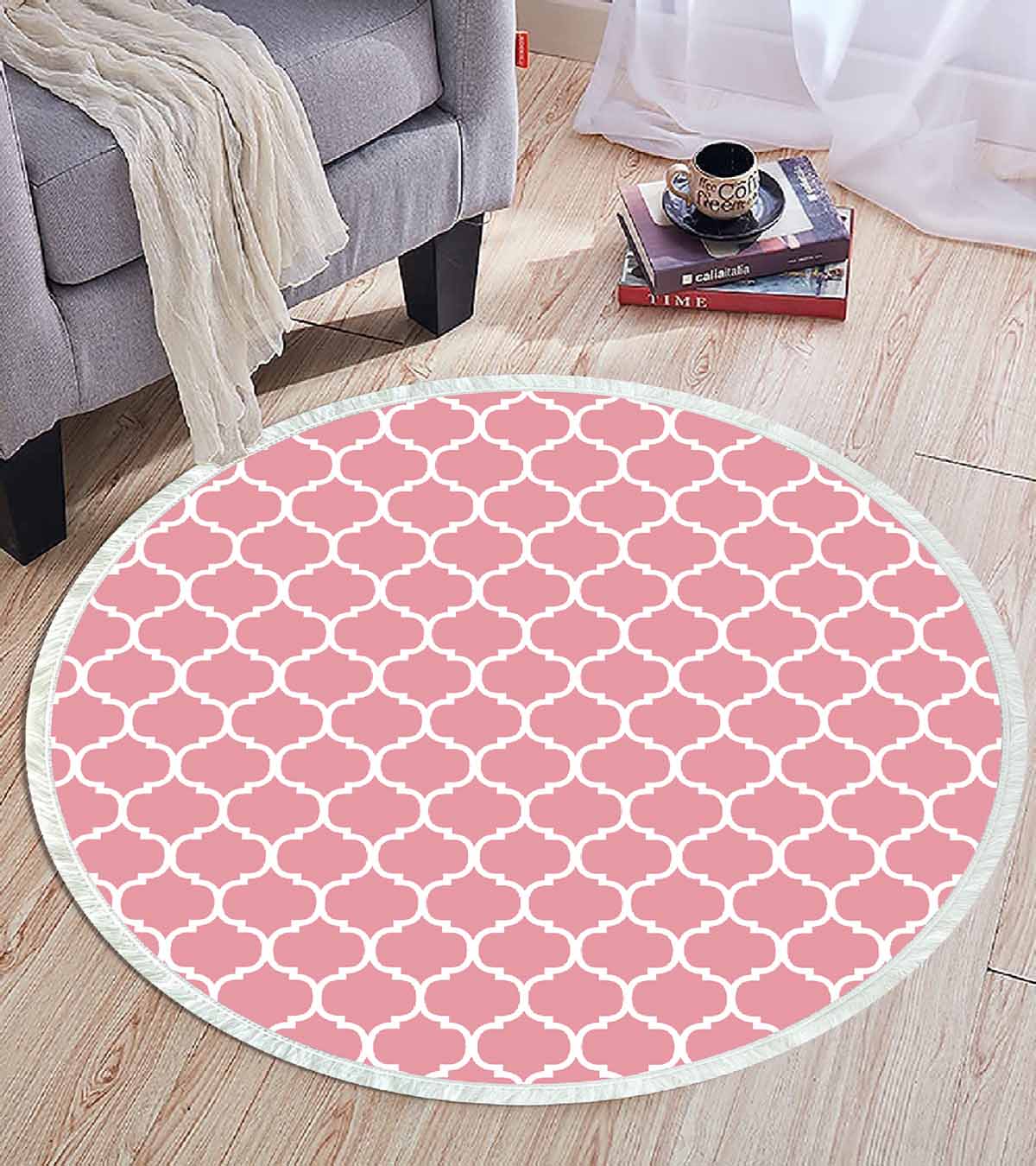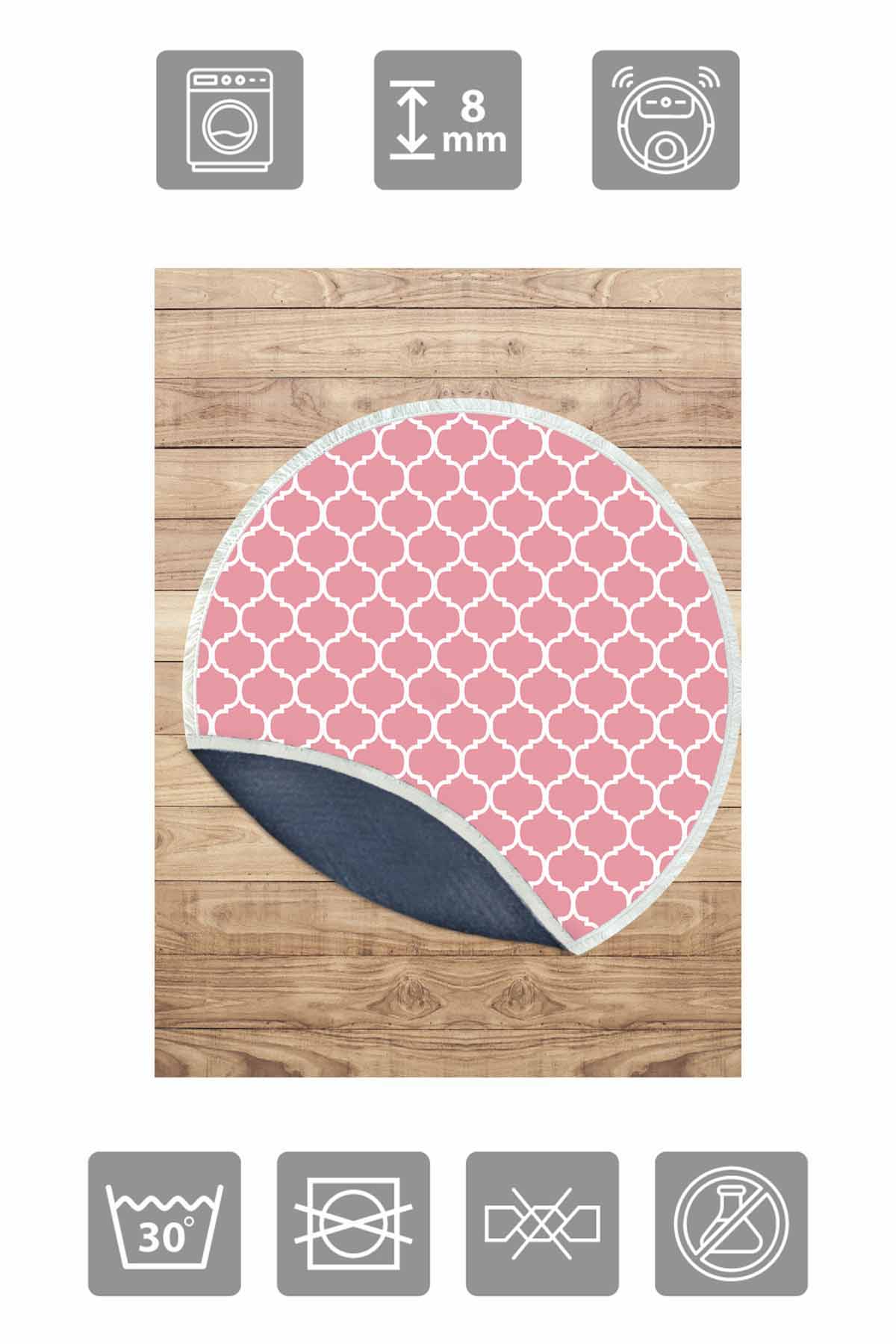 بيركيليم سجادة دائرية قابلة للغسل مزخرفة بقاعدة حريرية غير قابلة للانزلاق | MLN-IP-YU-HT-552