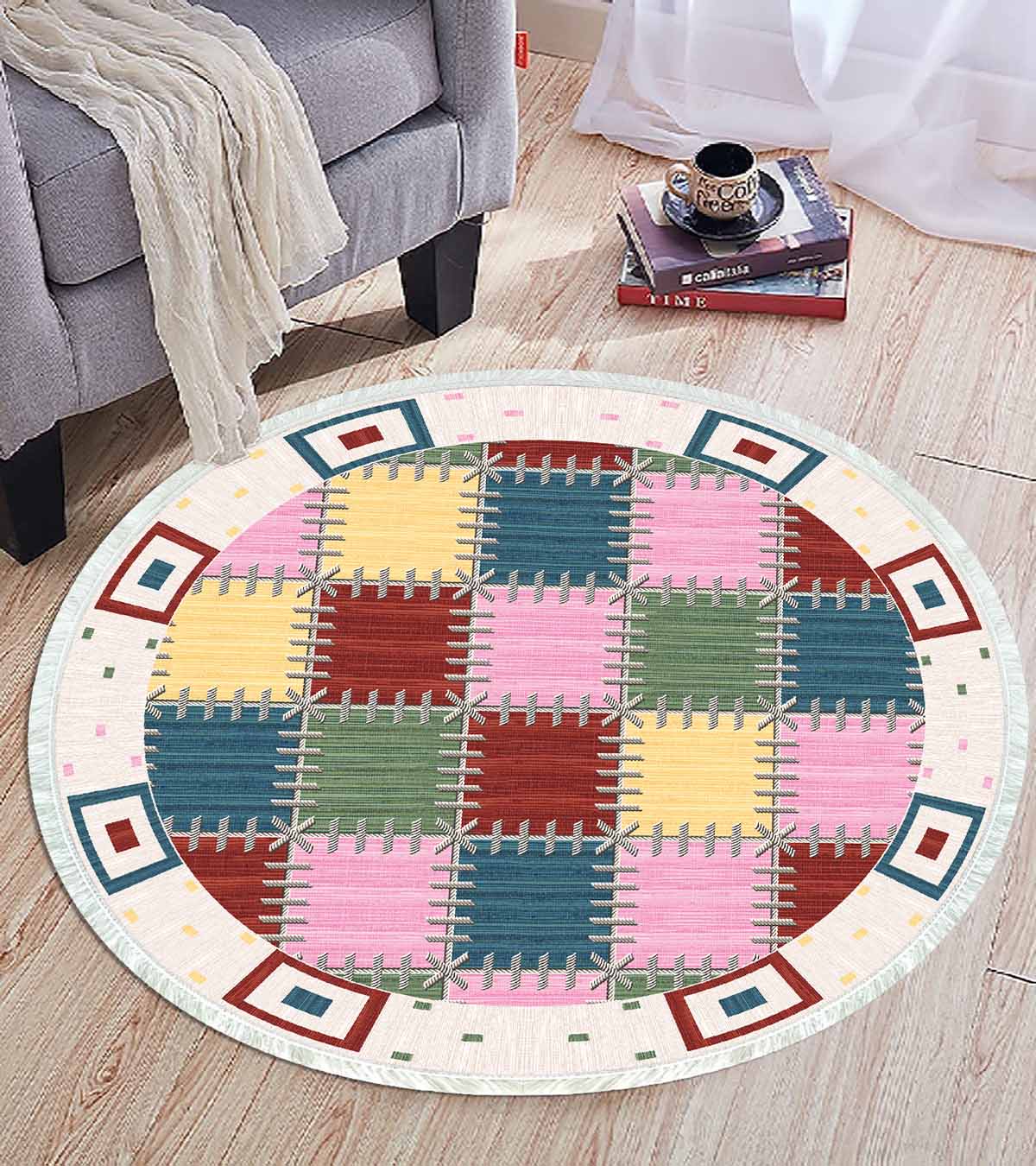 الأبعاد والتسليم: 1x بيركيليم سجادة دائرية قابلة للغسل مزخرفة بقاعدة حريرية غير قابلة للانزلاق | MLN-IP-YU-HT-568