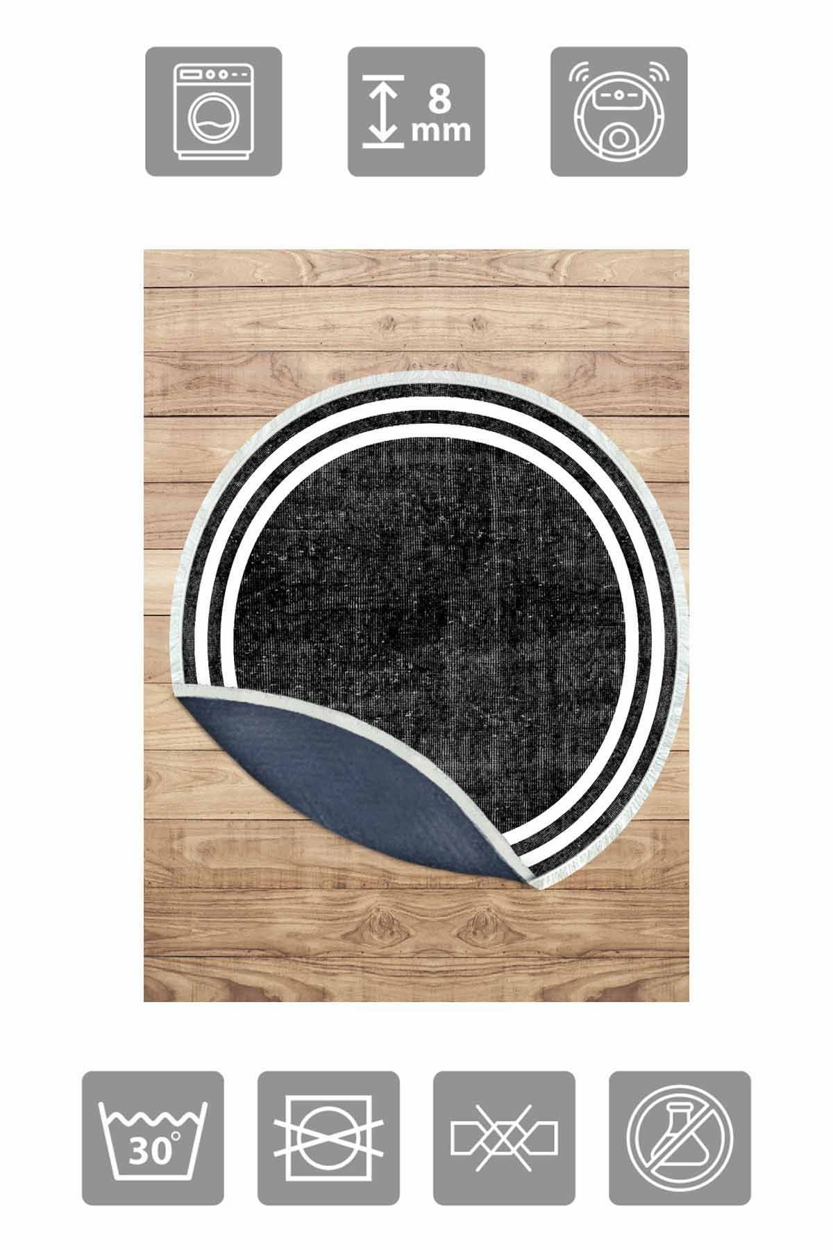 الأبعاد والتسليم: 1x بيركيليم سجادة دائرية قابلة للغسل مزخرفة بقاعدة حريرية غير قابلة للانزلاق | MLN-IP-YU-HT-574