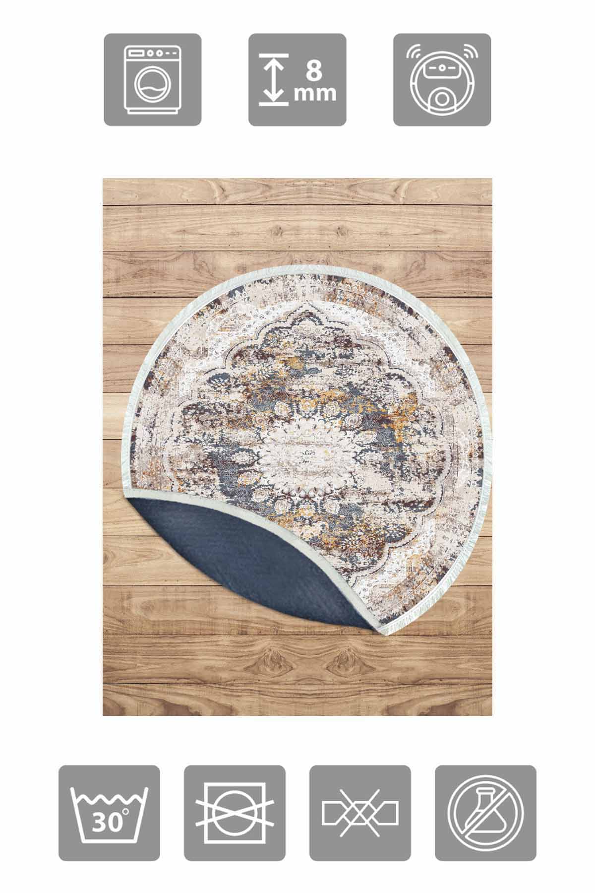الأبعاد والتسليم: 1x بيركيليم سجادة دائرية قابلة للغسل مزخرفة بقاعدة حريرية غير قابلة للانزلاق | MLN-IP-YU-HT-631