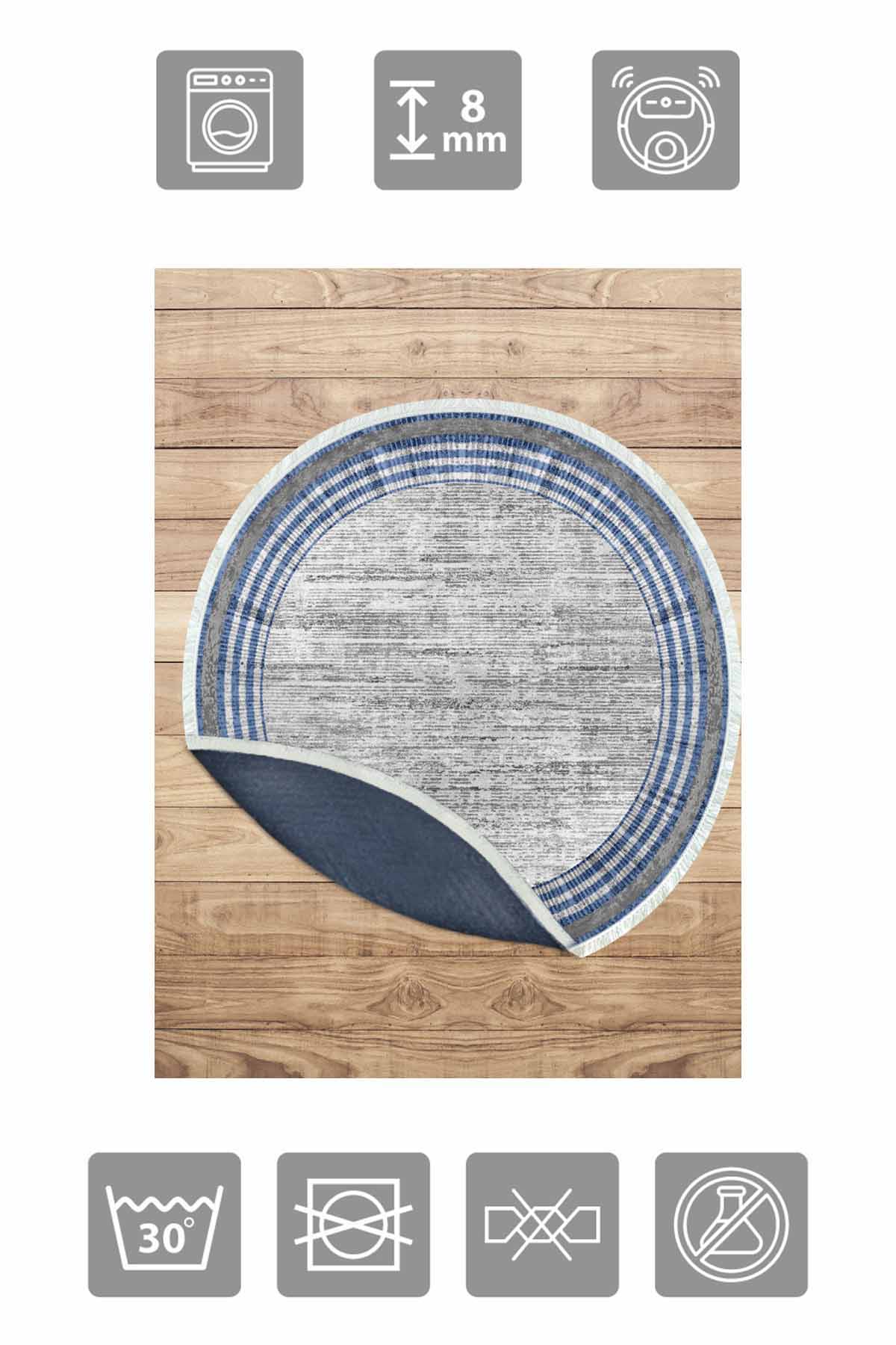 بيركيليم سجادة دائرية قابلة للغسل مزخرفة بقاعدة حريرية غير قابلة للانزلاق | MLN-IP-YU-HT-663
