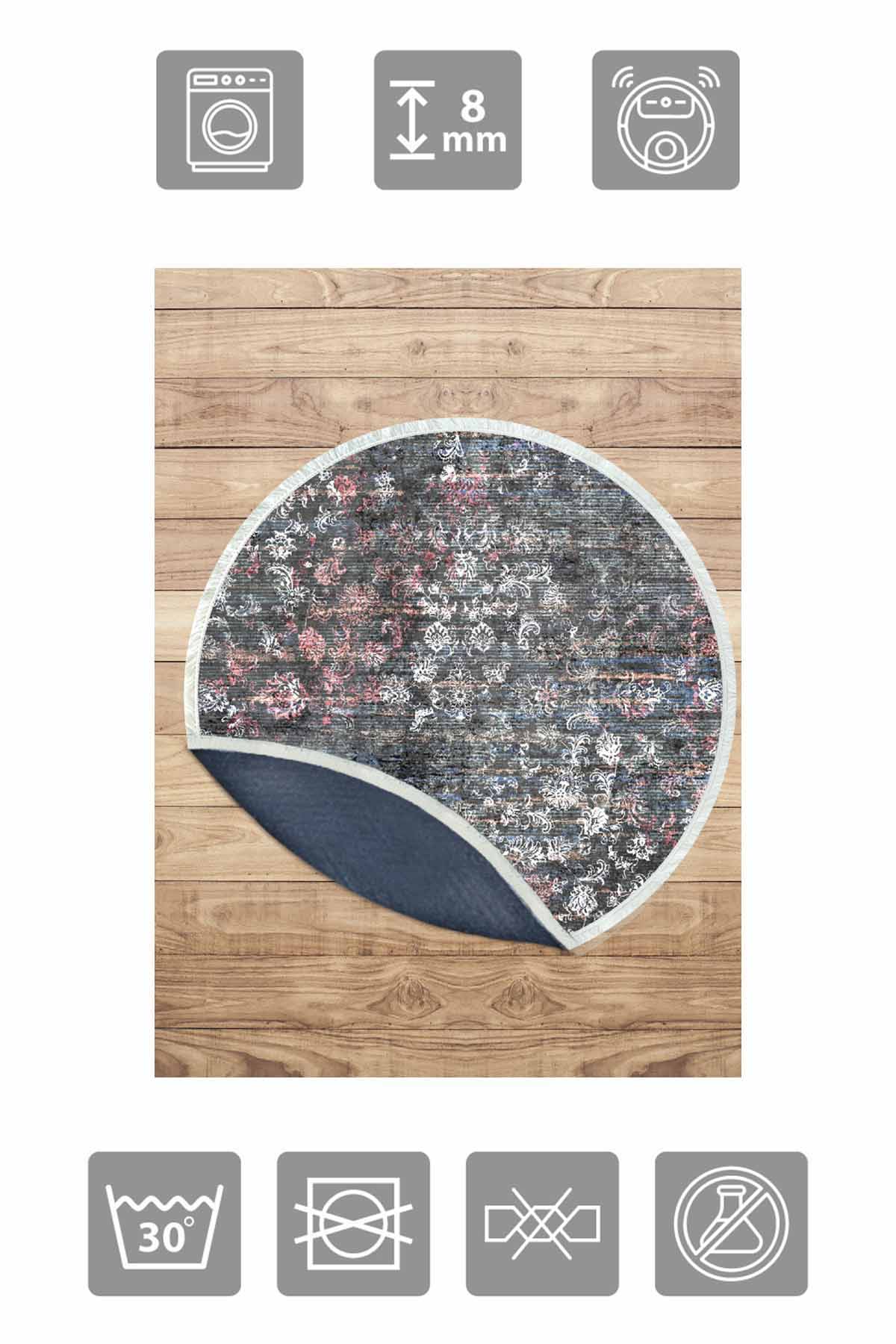 الأبعاد والتسليم: 1x بيركيليم سجادة دائرية قابلة للغسل مزخرفة بقاعدة حريرية غير قابلة للانزلاق | MLN-IP-YU-HT-698