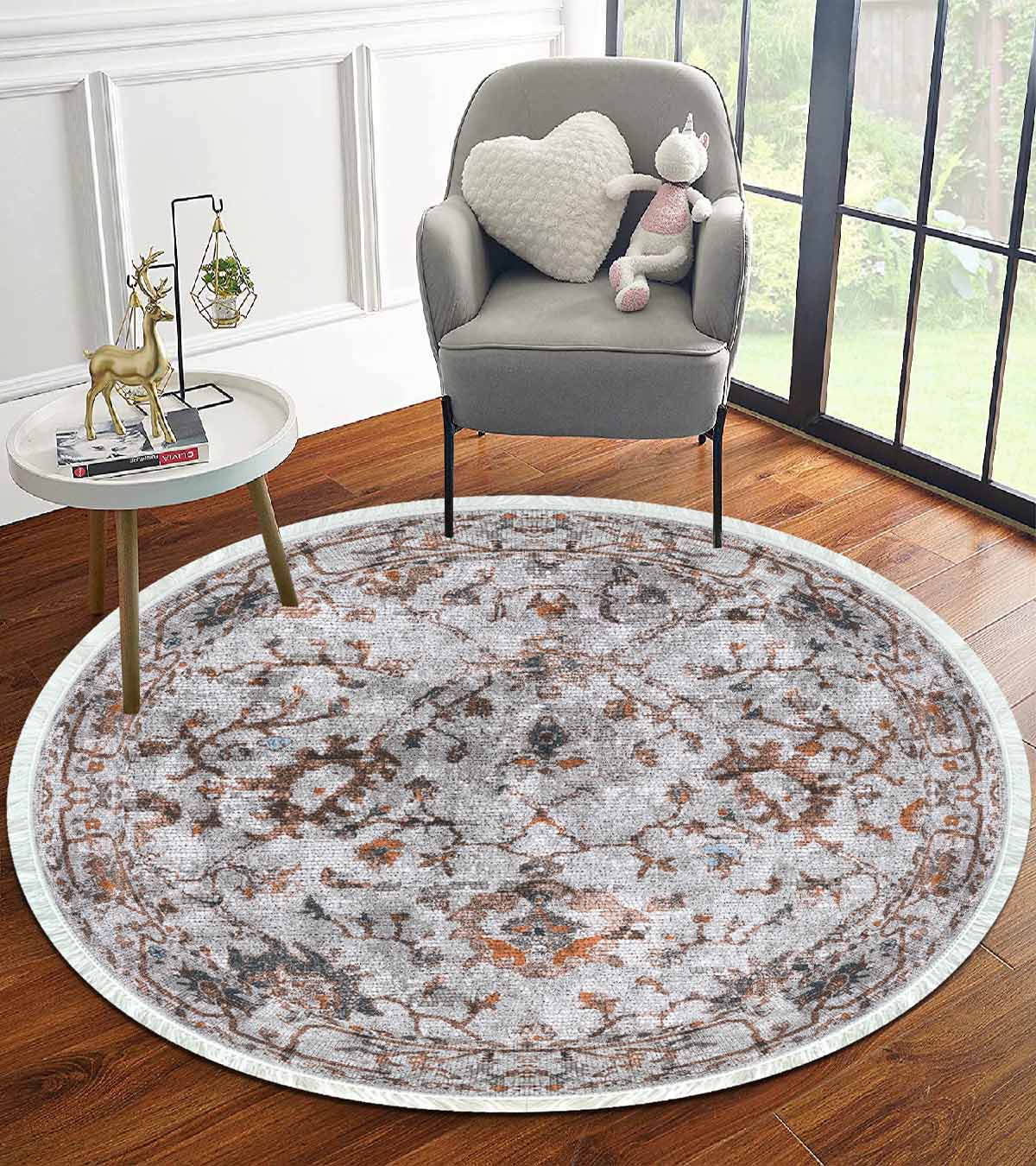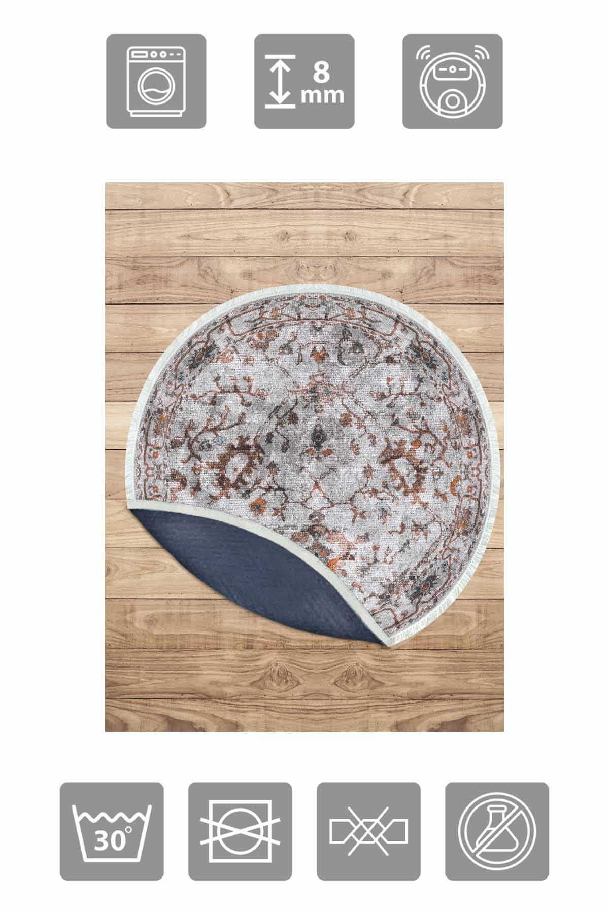 الأبعاد والتسليم: 1x بيركيليم سجادة دائرية قابلة للغسل مزخرفة بقاعدة حريرية غير قابلة للانزلاق | MLN-IP-YU-HT-706