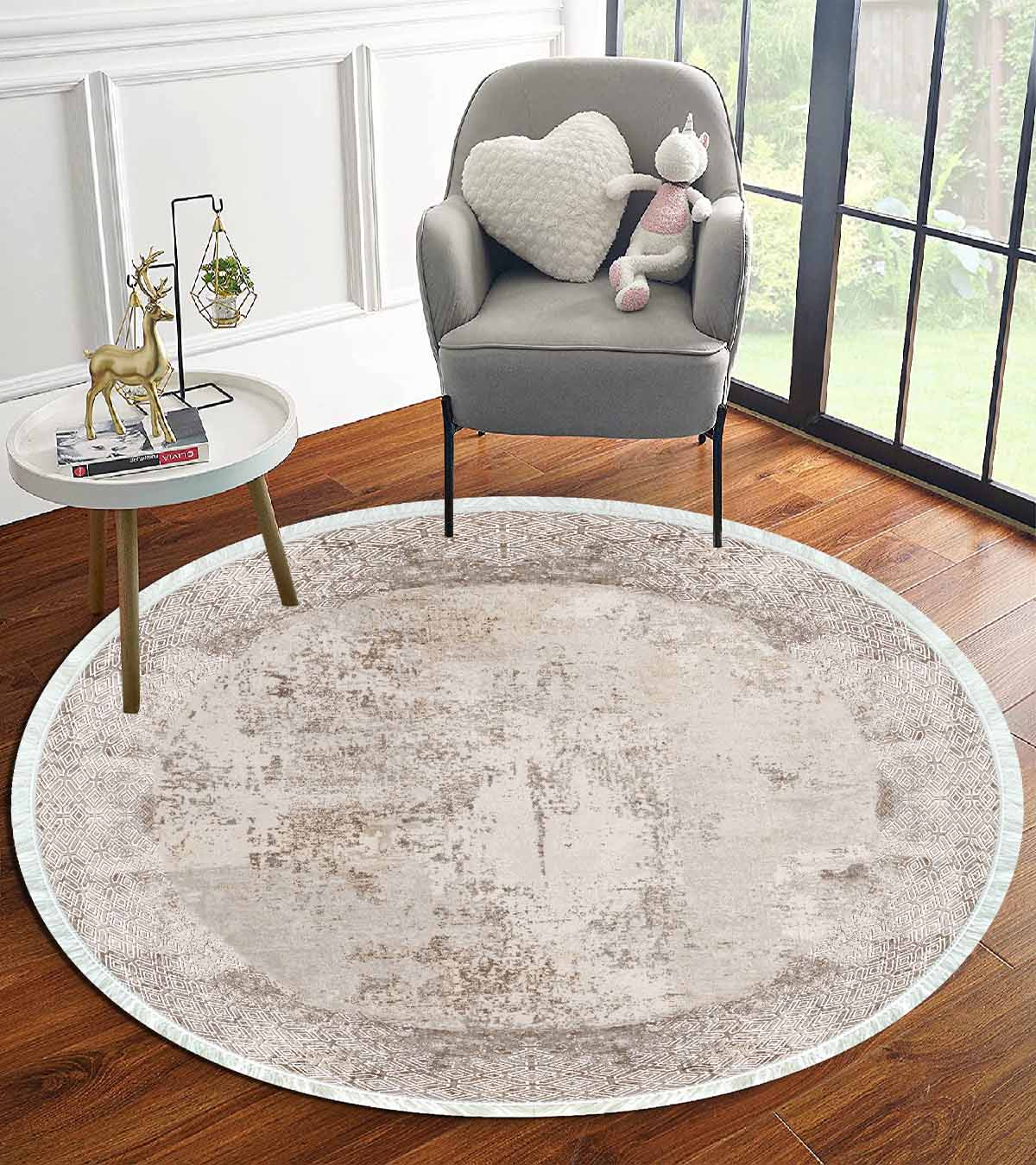 الأبعاد والتسليم: 1x بيركيليم سجادة دائرية قابلة للغسل مزخرفة بقاعدة حريرية غير قابلة للانزلاق | MLN-IP-YU-HT-948