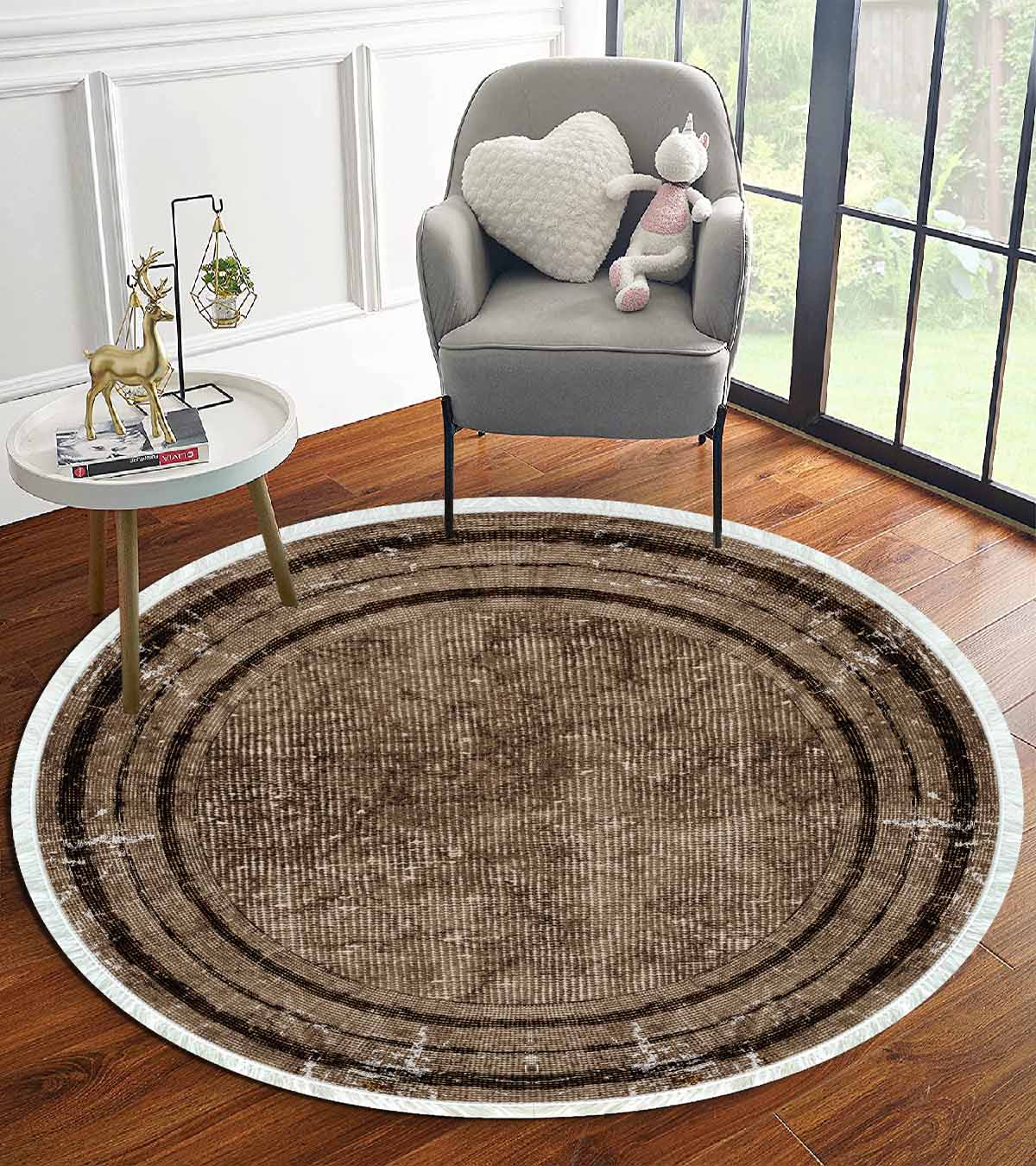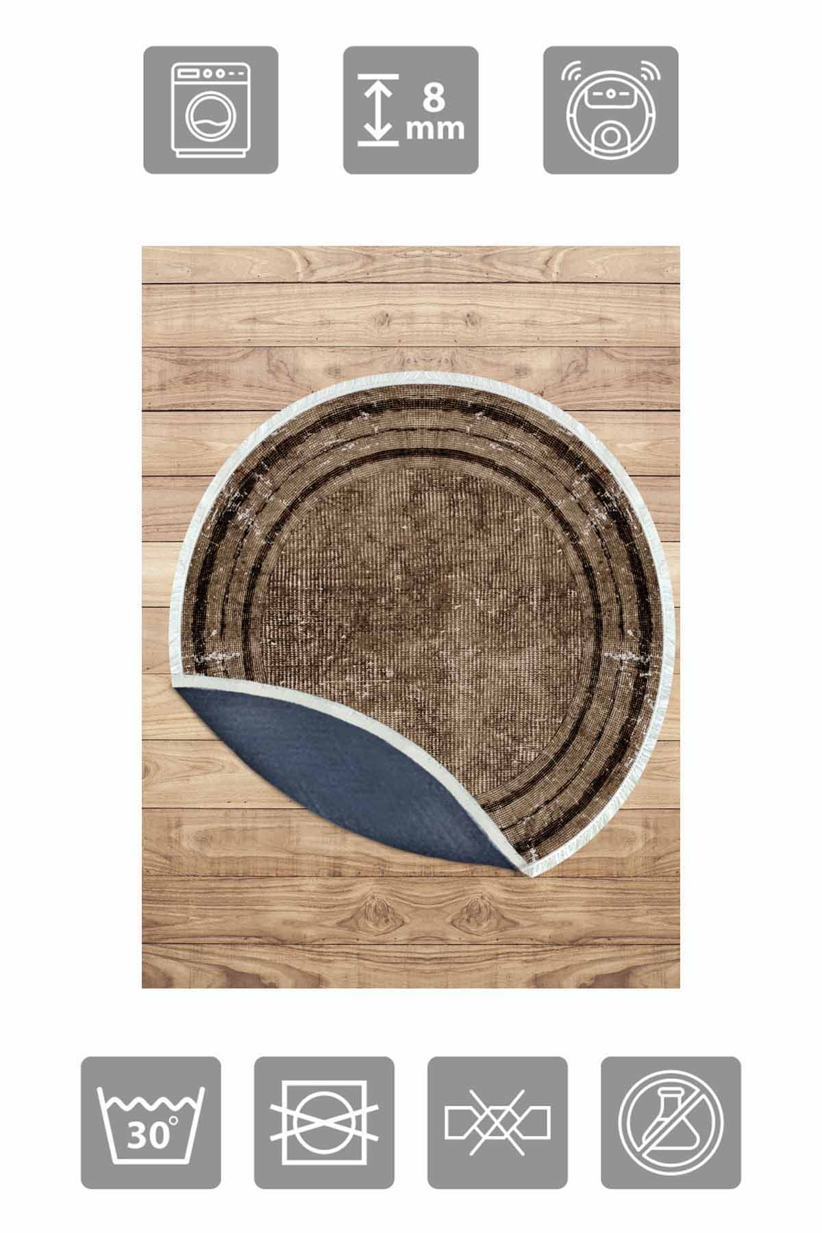 الأبعاد والتسليم: 1x بيركيليم سجادة دائرية قابلة للغسل مزخرفة بقاعدة حريرية غير قابلة للانزلاق | MLN-IP-YU-HT-974