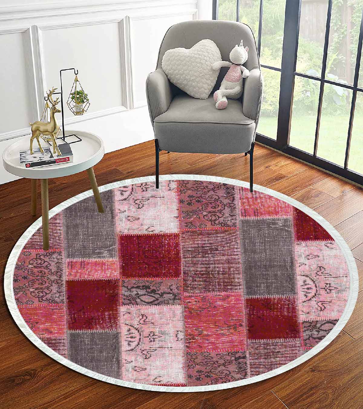 الأبعاد والتسليم: 1x بيركيليم سجادة دائرية قابلة للغسل مزخرفة بقاعدة حريرية غير قابلة للانزلاق | MLN-IP-YU-HT-980