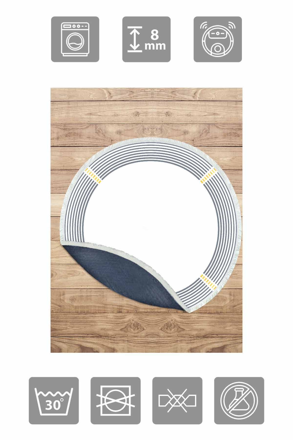 الأبعاد والتسليم: 1x بيركيليم سجادة دائرية قابلة للغسل مزخرفة بقاعدة حريرية غير قابلة للانزلاق | MLN-IP-YU-HT-1396