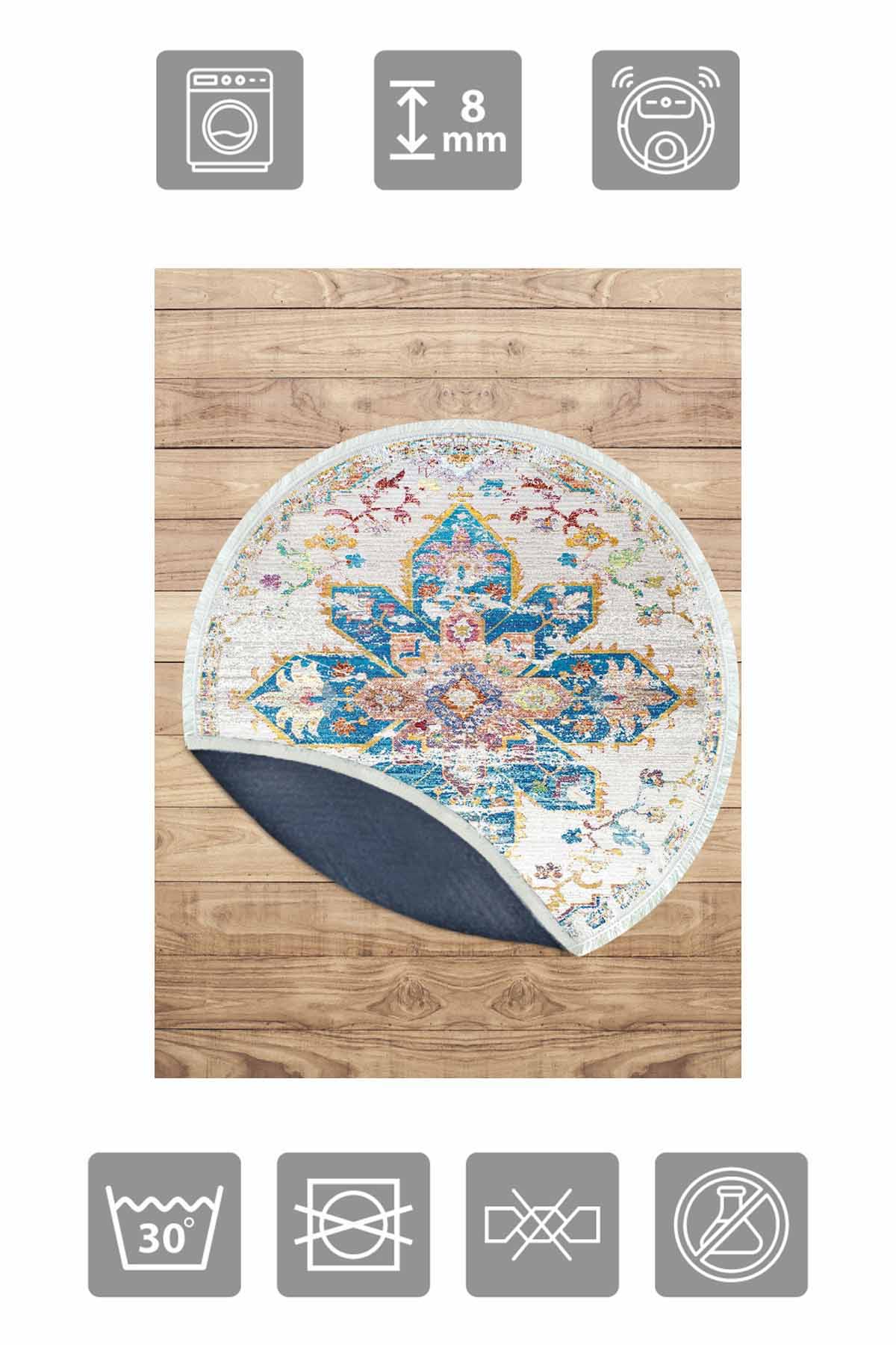 الأبعاد والتسليم: 1x بيركيليم سجادة دائرية قابلة للغسل مزخرفة بقاعدة حريرية غير قابلة للانزلاق | MLN-IP-YU-HY-1045