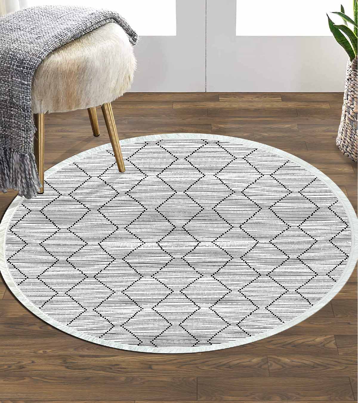 الأبعاد والتسليم: 1x بيركيليم سجادة دائرية قابلة للغسل مزخرفة بقاعدة حريرية غير قابلة للانزلاق | MLN-IP-YU-HY-1050