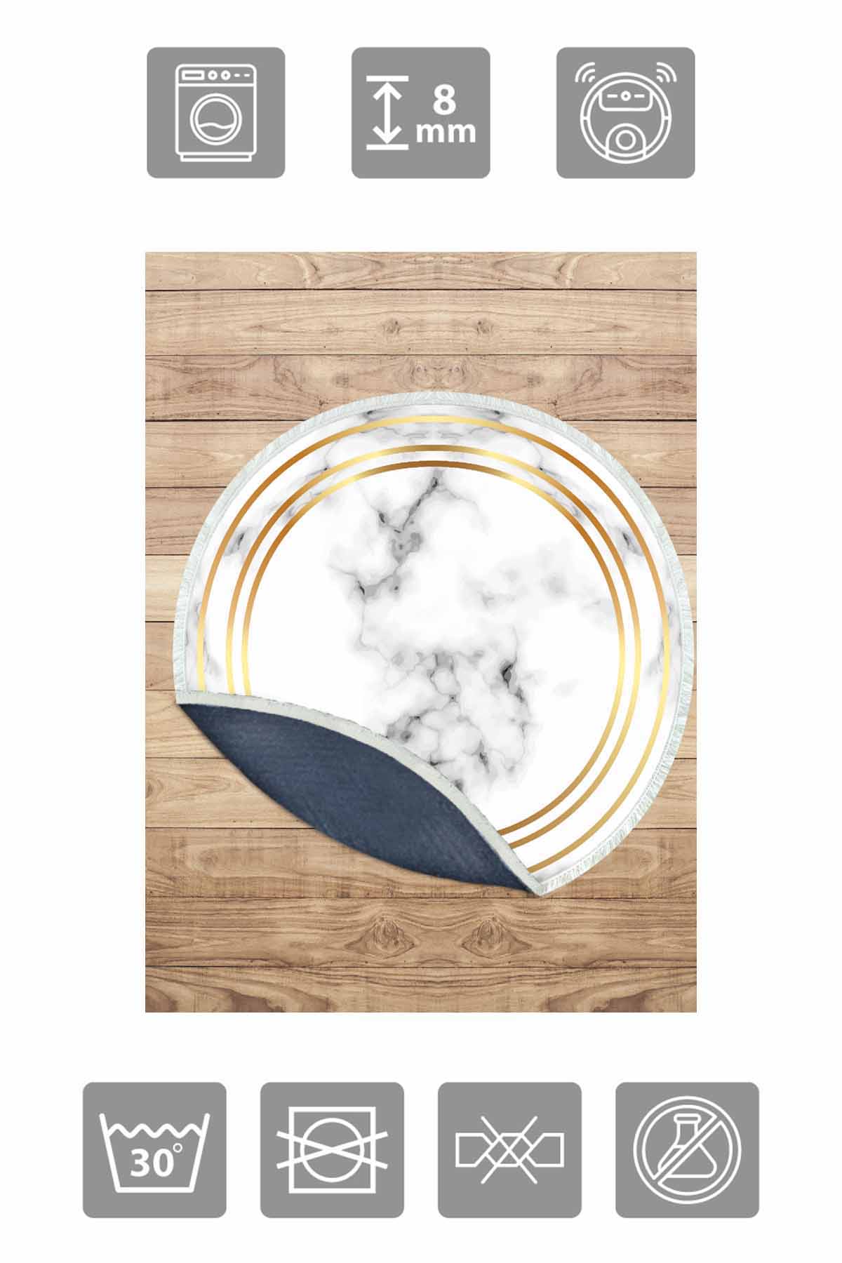 الأبعاد والتسليم: 1x بيركيليم سجادة دائرية قابلة للغسل مزخرفة بقاعدة حريرية غير قابلة للانزلاق | MLN-IP-YU-SD-047