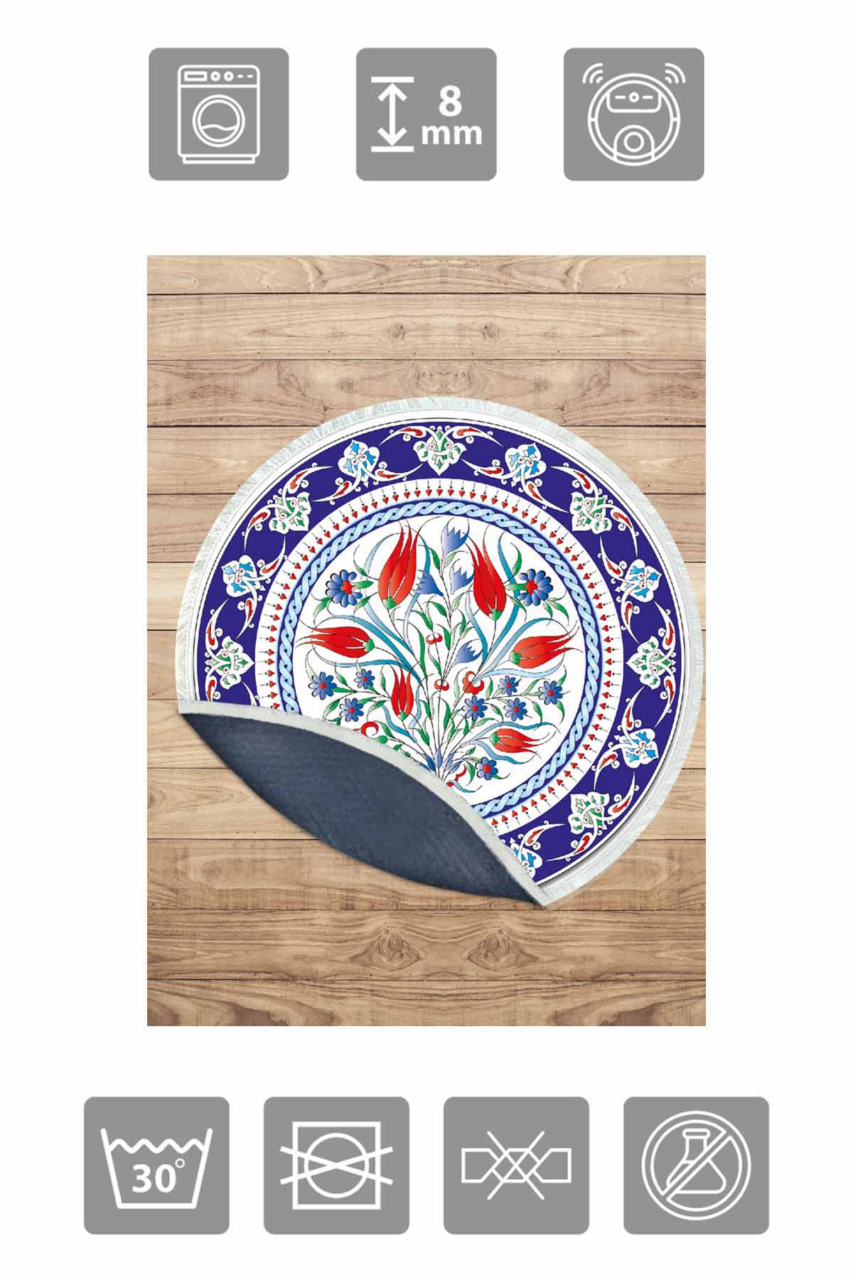 الأبعاد والتسليم: 1x بيركيليم سجادة دائرية قابلة للغسل مزخرفة بقاعدة حريرية غير قابلة للانزلاق | MLN-IP-YU-SD-100