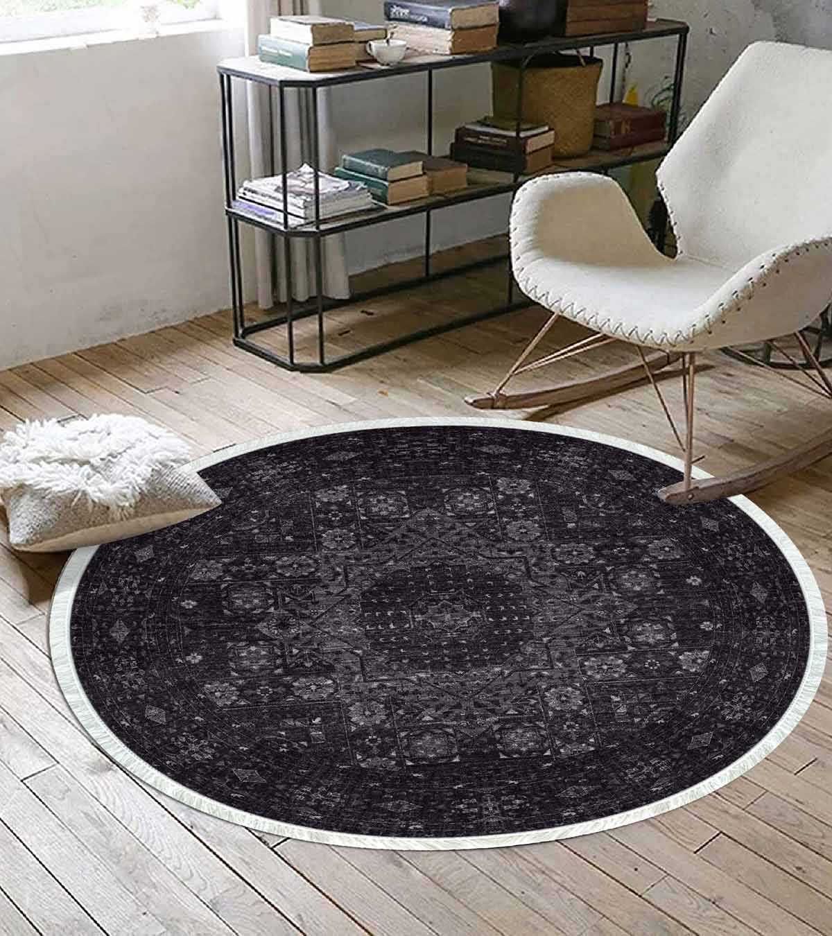 بيركيليم سجادة دائرية قابلة للغسل مزخرفة بقاعدة حريرية غير قابلة للانزلاق | MLN-IP-YU-SD-342
