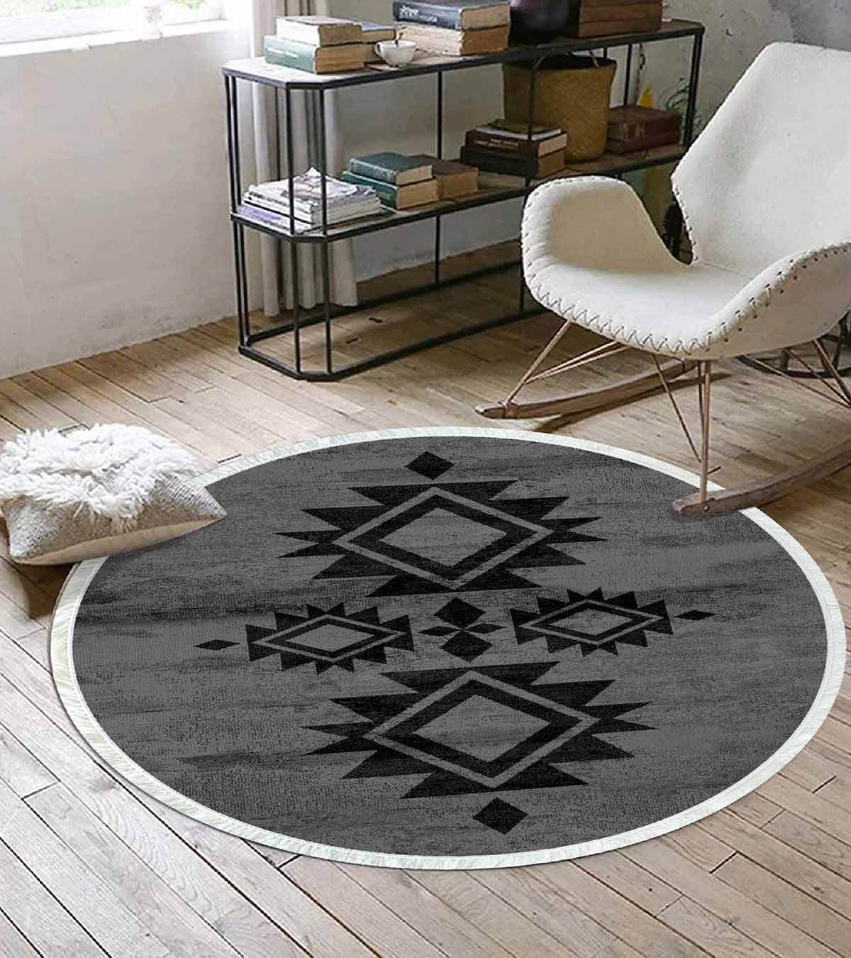 بيركيليم سجادة دائرية قابلة للغسل مزخرفة بقاعدة حريرية غير قابلة للانزلاق | MLN-IP-YU-SD-370