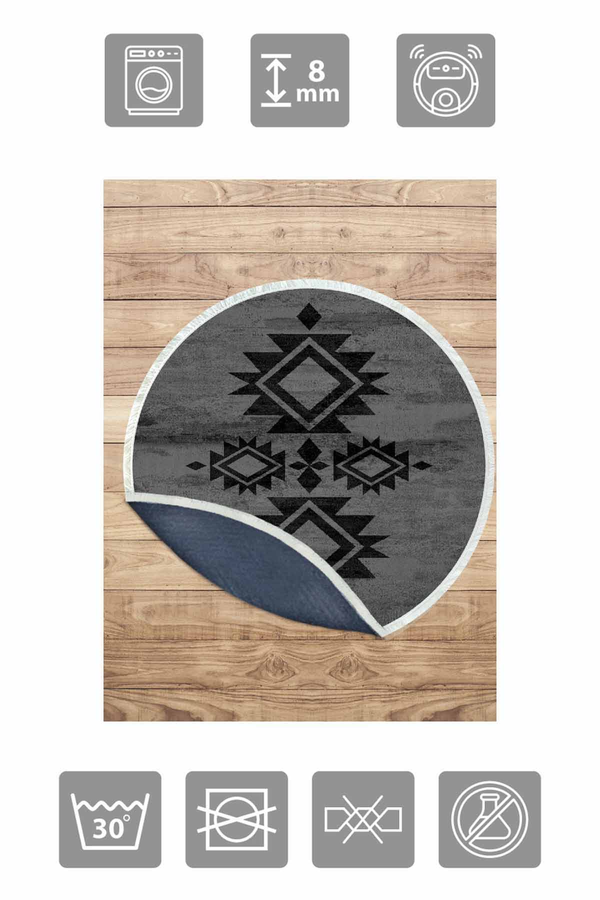 :معلومات المنتج "بيركيليم سجادة دائرية قابلة للغسل مزخرفة بقاعدة حريرية غير قابلة للانزلاق | MLN-IP-YU-SD-370"