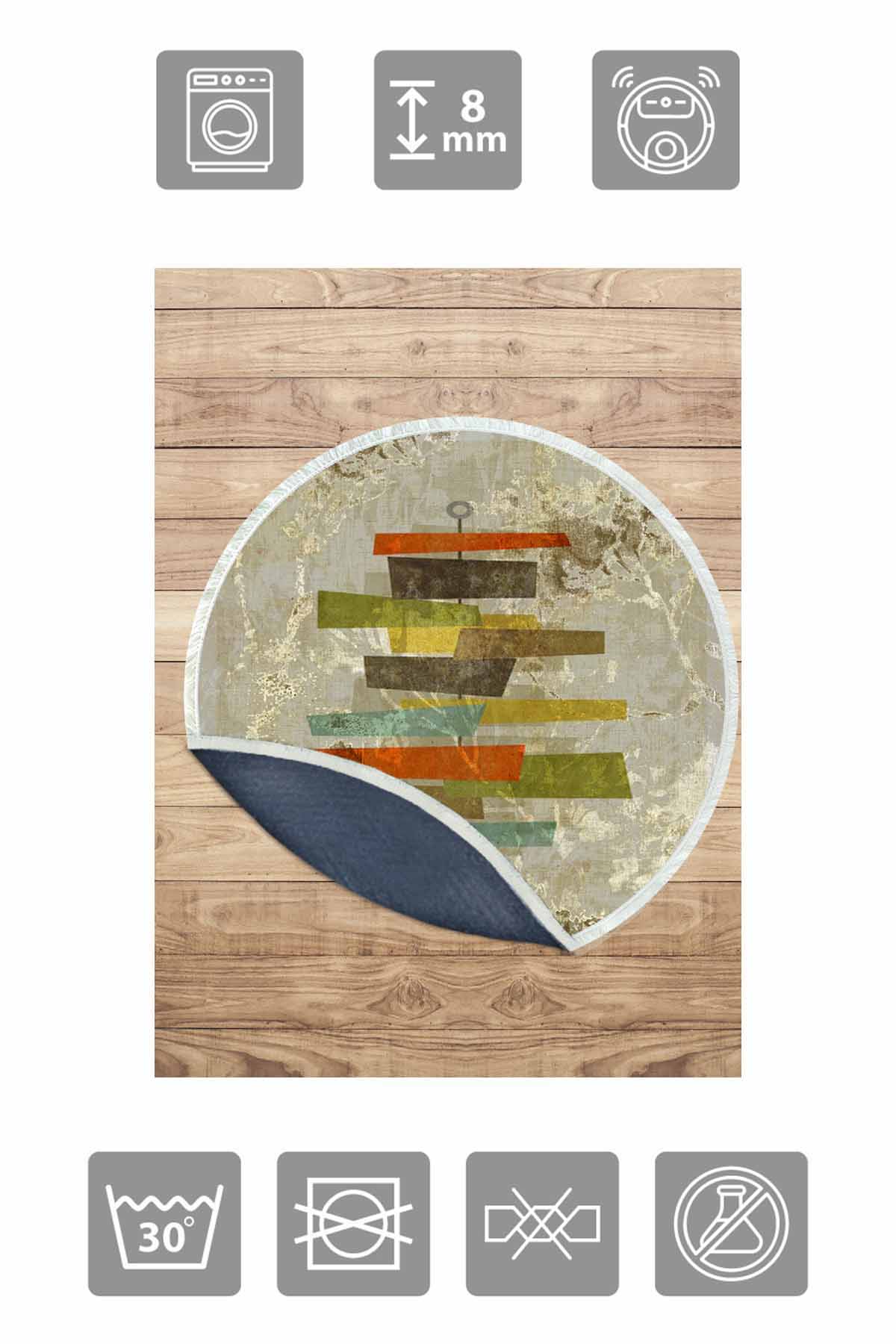 الأبعاد والتسليم: 1x بيركيليم سجادة دائرية قابلة للغسل مزخرفة بقاعدة حريرية غير قابلة للانزلاق | MLN-IP-YU-SD-371