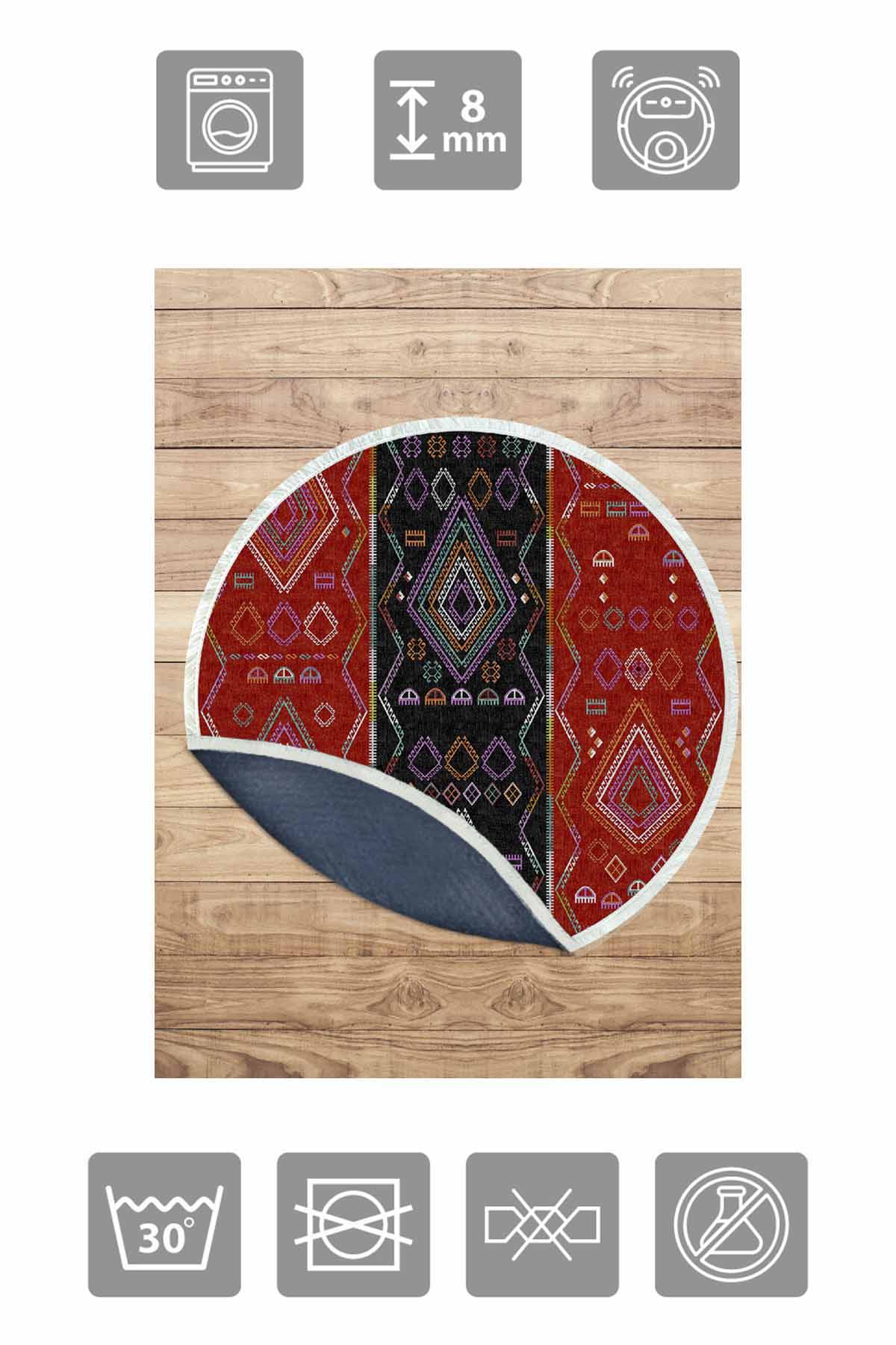 بيركيليم سجادة دائرية قابلة للغسل مزخرفة بقاعدة حريرية غير قابلة للانزلاق | MLN-IP-YU-SD-375