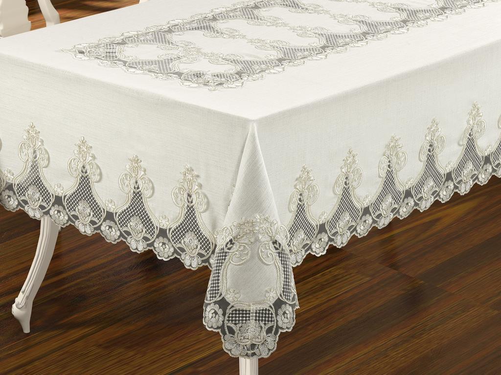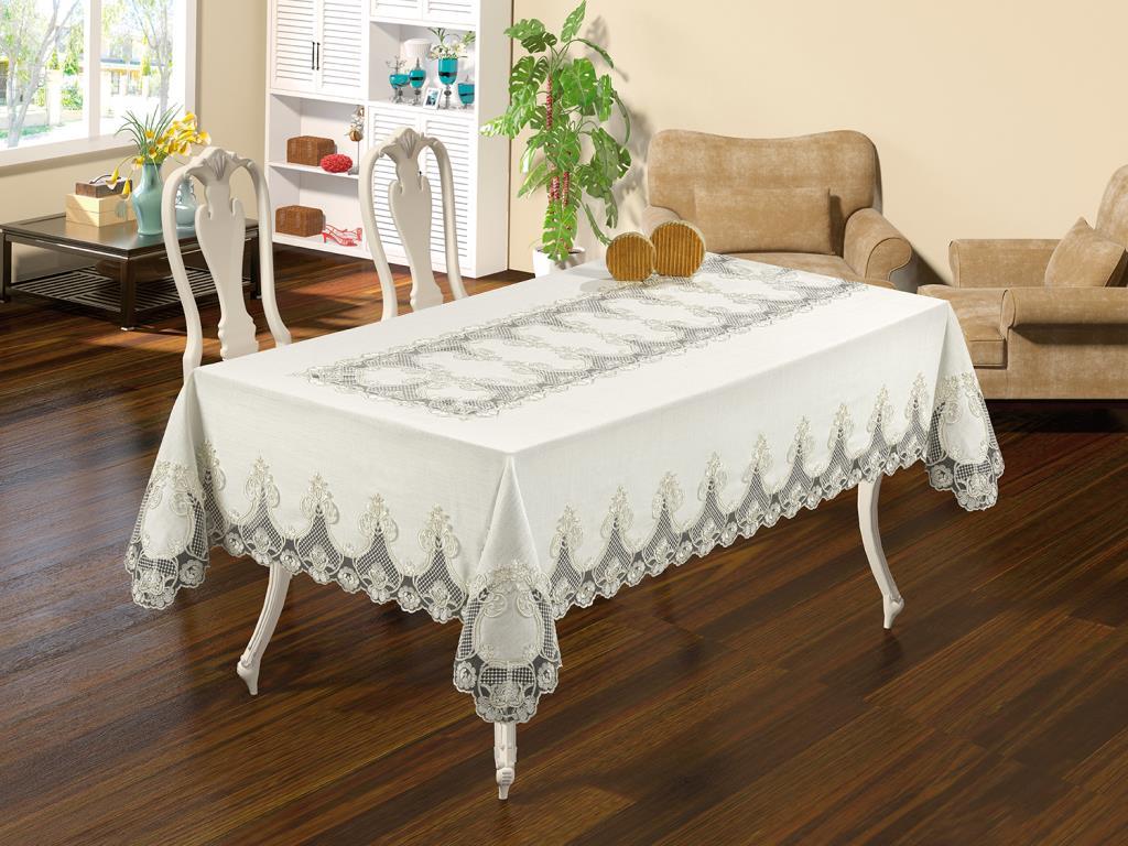 Masa Örtüsünün Dört Tarafına Fransız Danteli oyma yöntemi ile dikilerecek özel bir tasarım oluşturulmuştur.